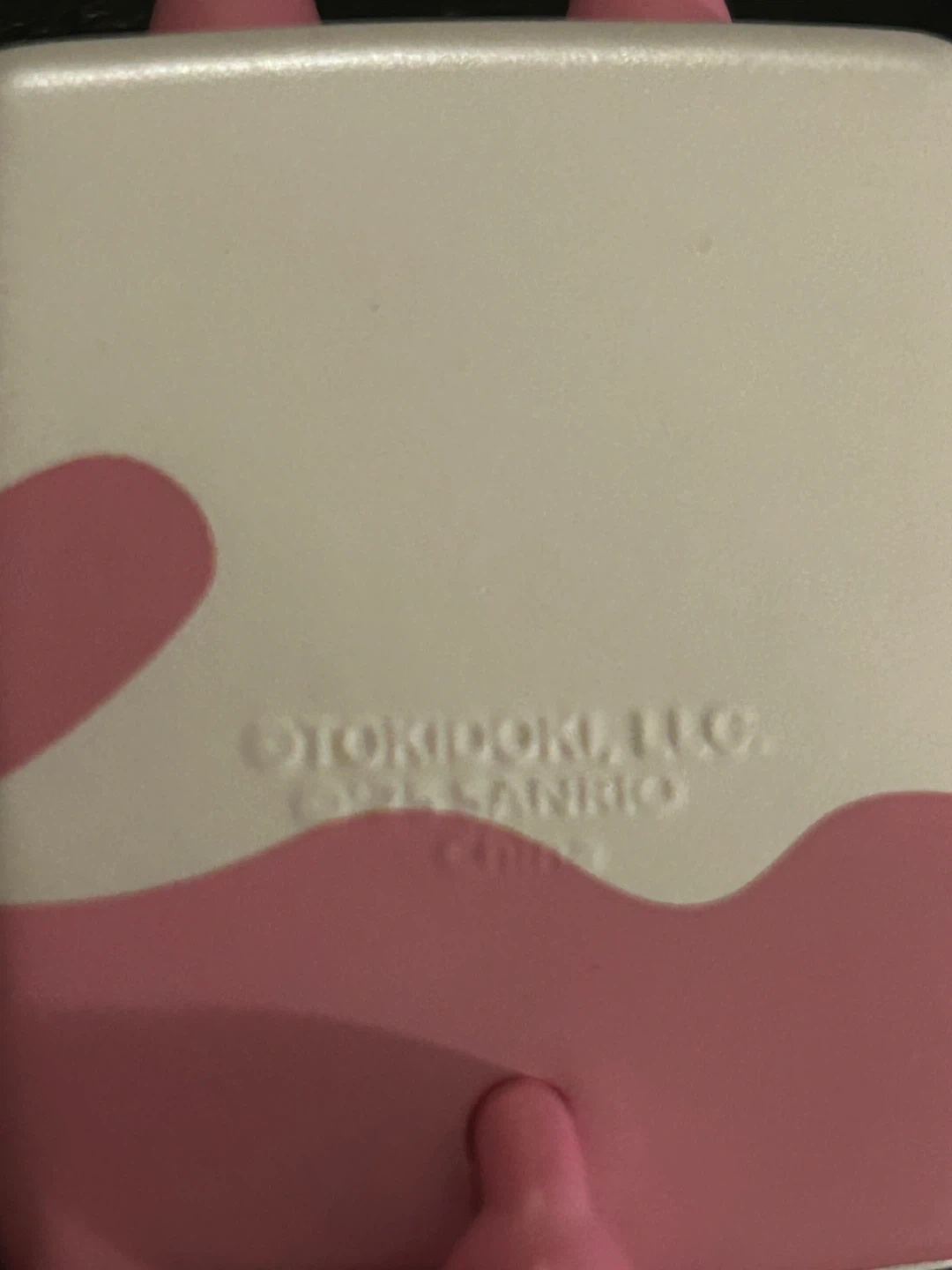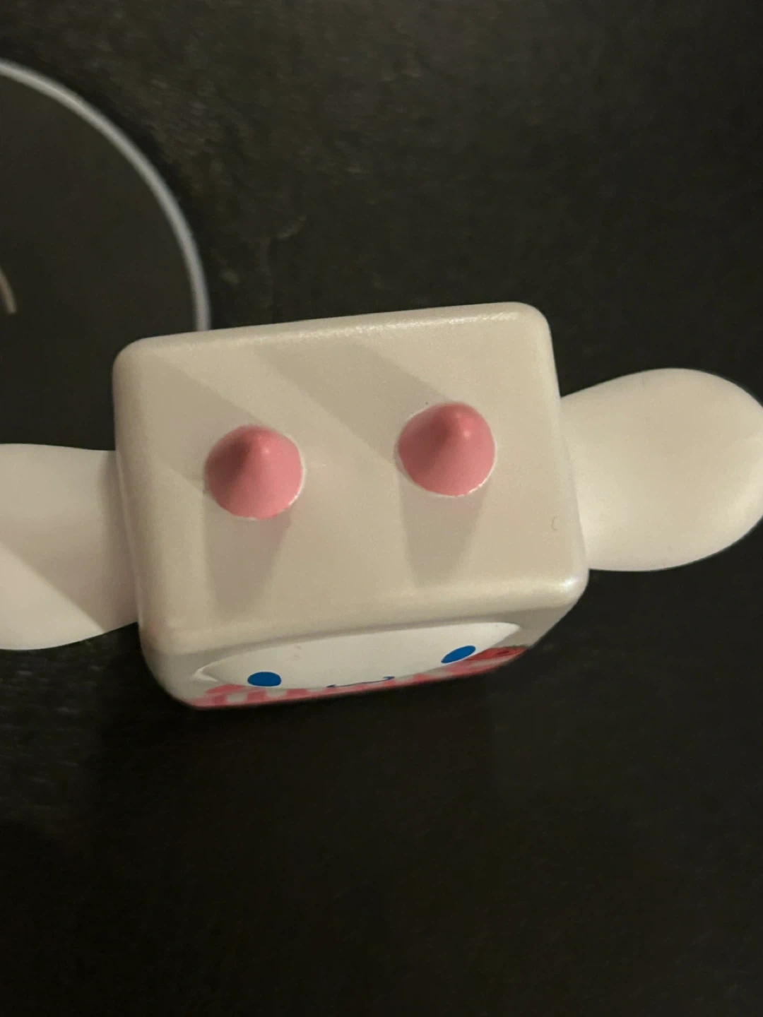 This is a cute Cinnamoroll figure designed to look like a milk carton. It's white with pink accents and features Cinnamoroll's face. Made by Ototoekki, LLC, under license from Sanrio.