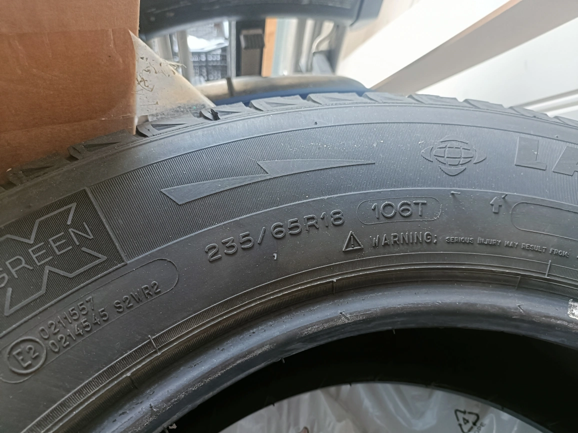 Winter tires in excellent condition. The tires are 235/65R18 with a load index of 106T. These tires are perfect to keep your vehicle safe and secure during the winter months, letting you enjoy the peace of mind you deserve.