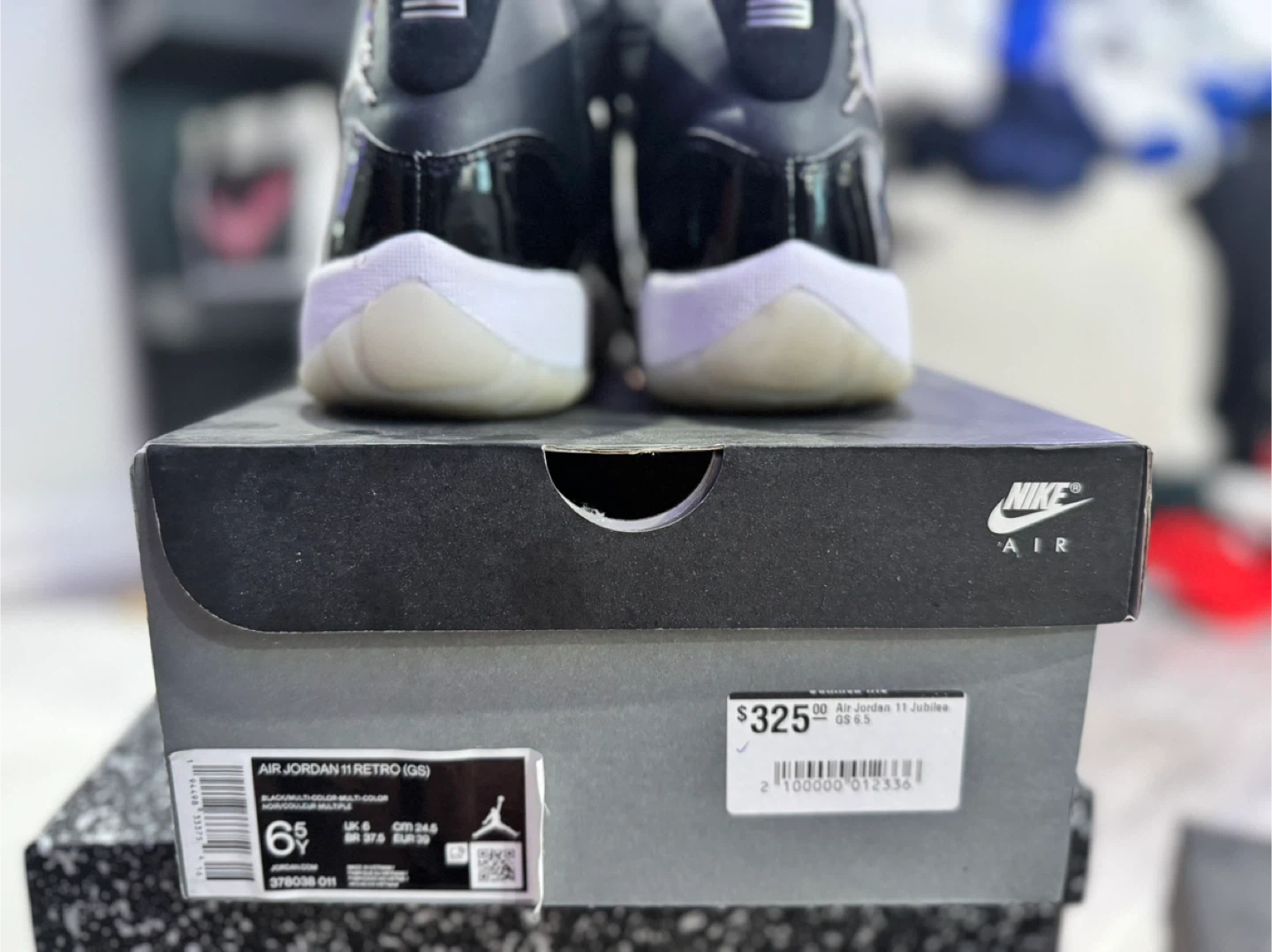 Selling a pair of Air Jordan 11 Retro GS Jubilee sneakers in size 6.5. They come with the original box. Originally bought for $325!