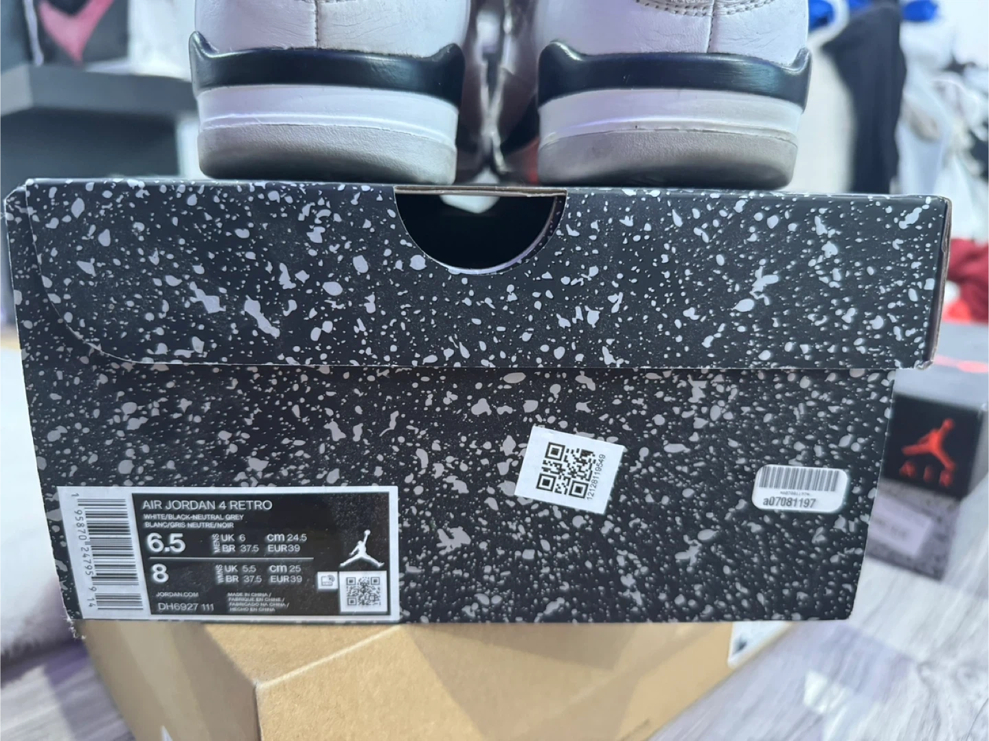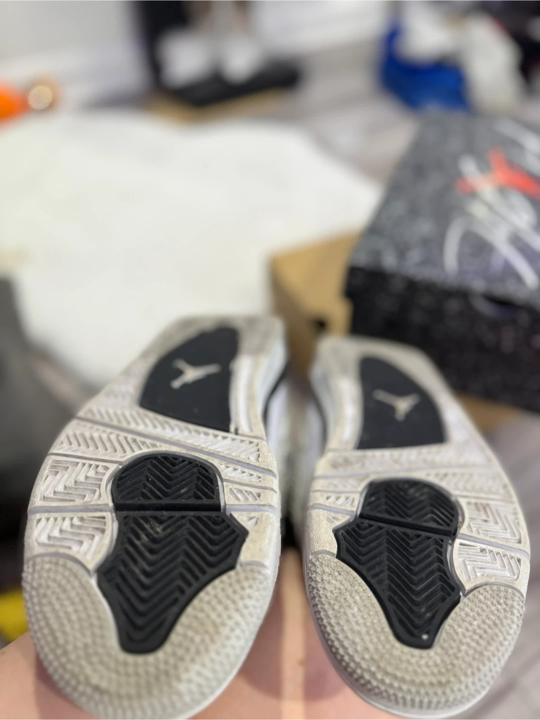 Selling a pair of Air Jordan 4 Retro in Military Black, size 8. They come with the original box. Please see the photos for condition!