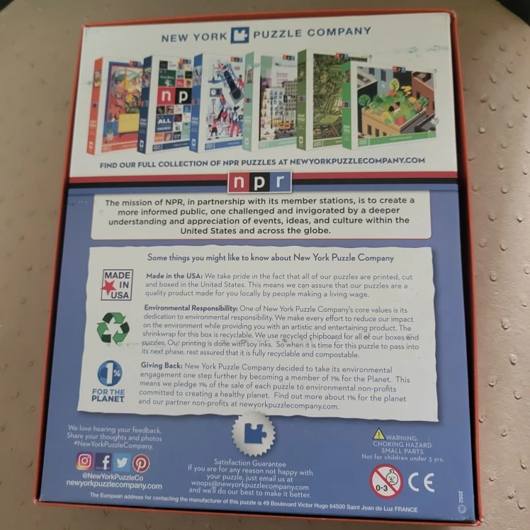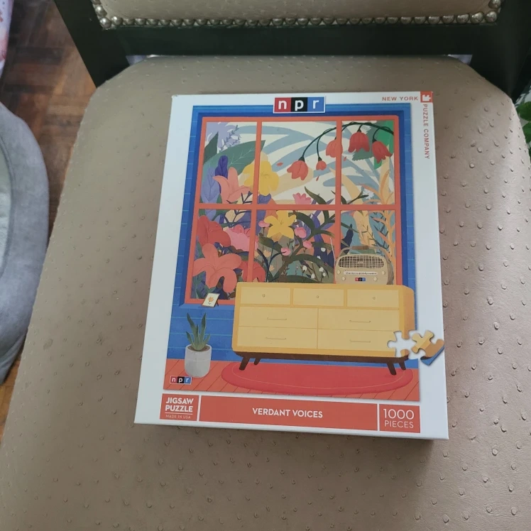 I'm selling a 1000-piece jigsaw puzzle from NPR and New York Puzzle Company. It's called Verdant Voices. The puzzle is still in its original packaging and has never been opened! It's made in the USA