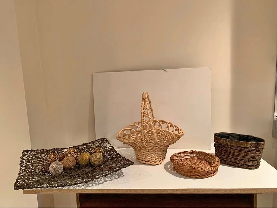 4 wicker decor pieces, can be used for flower arrangements or however you see fit. All four for $30. Located near square one Mississauga. Must pay with cash