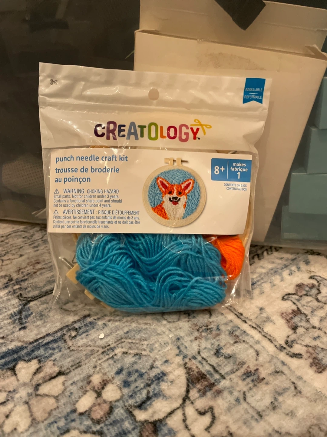 I'm selling a brand new Creatology punch needle craft kit! This kit includes everything you need to make a cute corgi design. It's recommended for ages 8 and up.