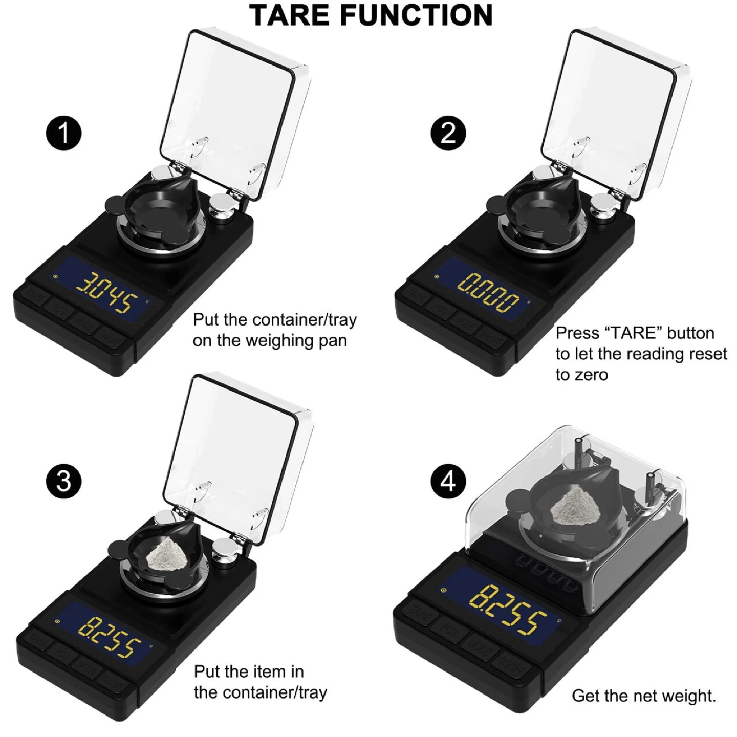This high-precision milligram scale is perfect for measuring small quantities with great accuracy. It comes with all the accessories you see pictured, including calibration weights, tweezers, and a scoop. The scale features a clear digital display and has a tare function for easy use. It's in excellent condition and ready to go!