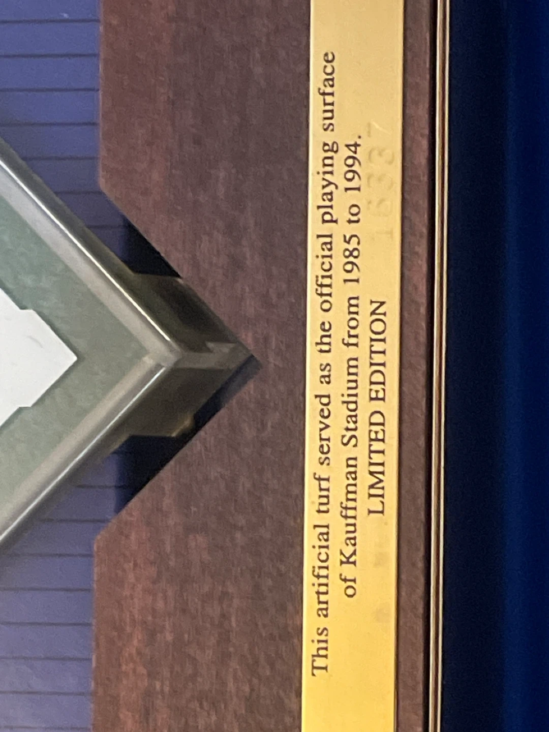 Selling a Kansas City Royals "Piece of History" authentic collector's edition. This is a timeless part of the rich heritage of the Kansas City Royals. This artificial turf served as the official playing surface of Kauffman Stadium from 1985 to 1994. It is a limited edition.
