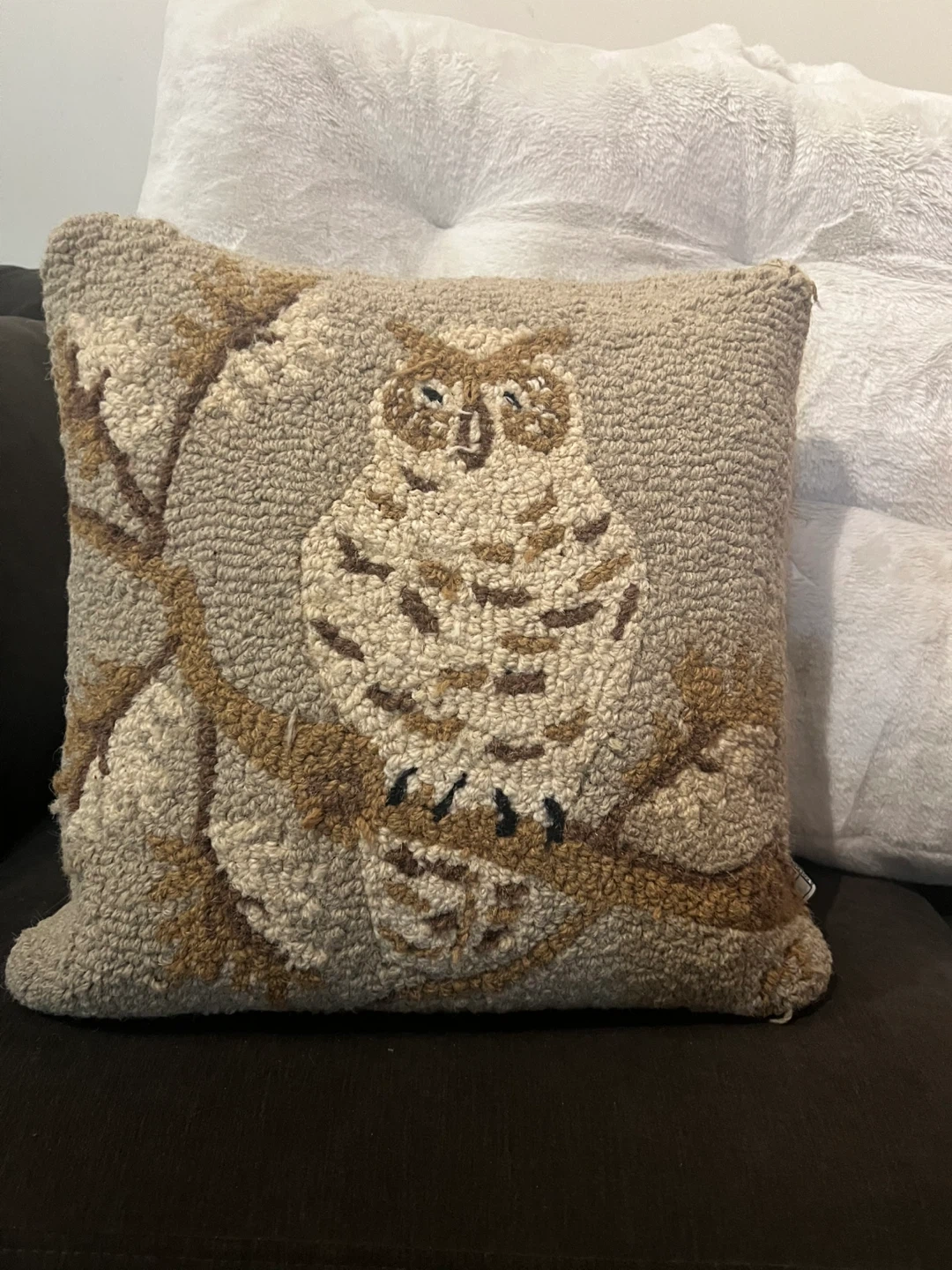 Cozy up your space with these wool chenille Chandler 4 Corners decorative pillows! They feature a charming owl design. Perfect for adding a touch of nature-inspired warmth to any room. Open to OBO.