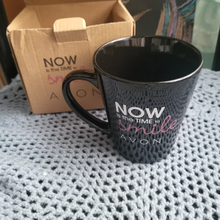 Selling an Avon mug that says 'Now is the time to smile'! It's a 12oz ceramic mug and comes with the original box. It's dishwasher safe and microwave safe too!