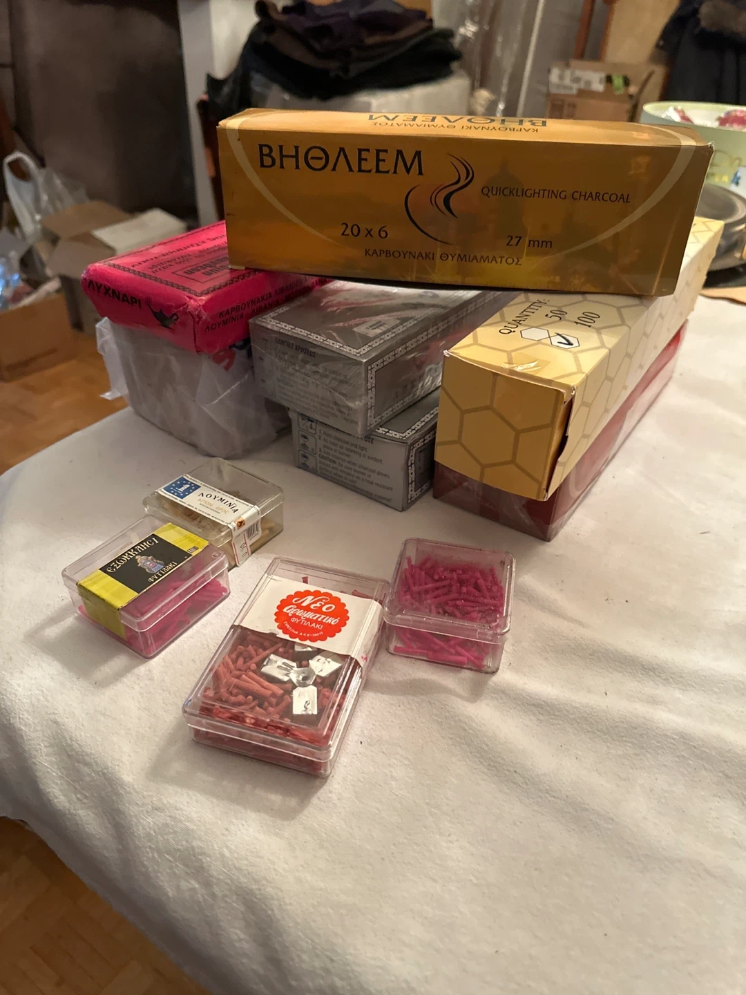 Selling ΒΗΘΛΕΕΜ Quicklighting Charcoal, 27mm. Also, some ΛΥΧΝΑΡΙ and Νέο αρωματικό ΦΥΤΙΛΑΚΙ are available.