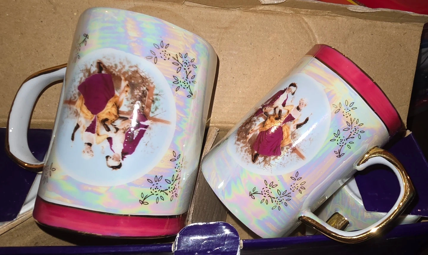 Selling 3 packs which are a set of 4 porcelain mugs from Japan Design. They feature a unique design and are in great condition. Comes with the original box