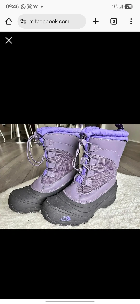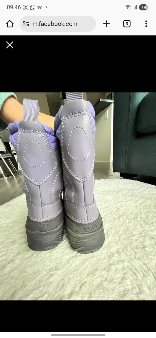 These are a pair of The North Face winter boots in a lovely shade of purple. They feature a Thermolite lining to keep your feet warm and cozy during those cold winter days! Comes with anti-slip outsole.