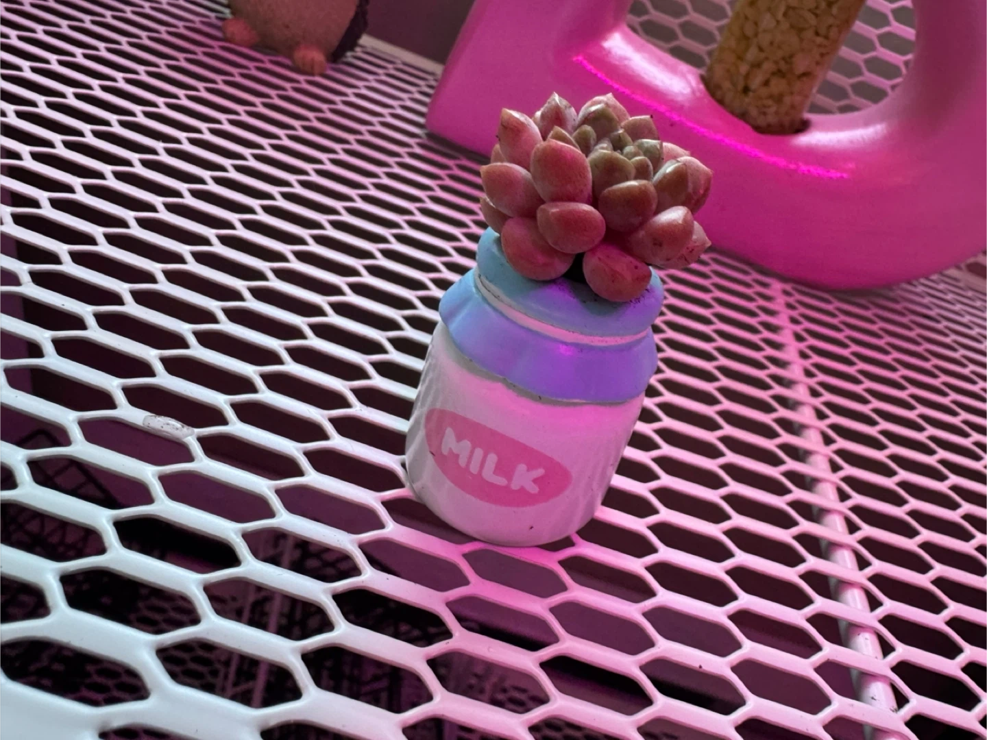 I have a variety of succulents available! They come in different shapes, sizes, and colours. Some are planted in cute pots, including one shaped like a milk bottle. Perfect for adding some greenery to your home or garden