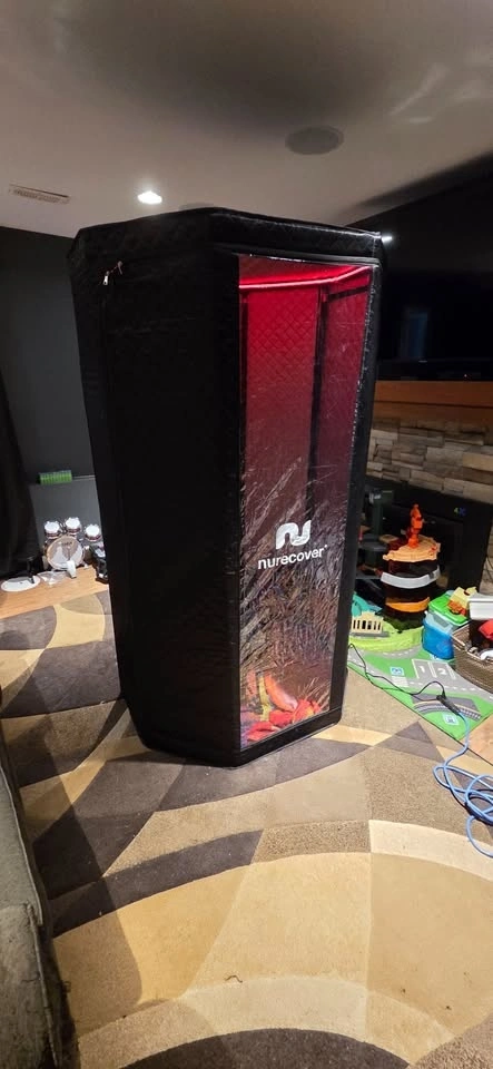 LIKE NEW 2025 nurecover Sauna Pro portable home sauna. Only used ONCE, comes with original packaging, materials and instructions. Comes with heater, chair, thermometer and LED lights. Description of the product here https://nurecover.com/products/sauna?variant=52391169524080. I live in Tsawwassen. Available 9am to 8pm.