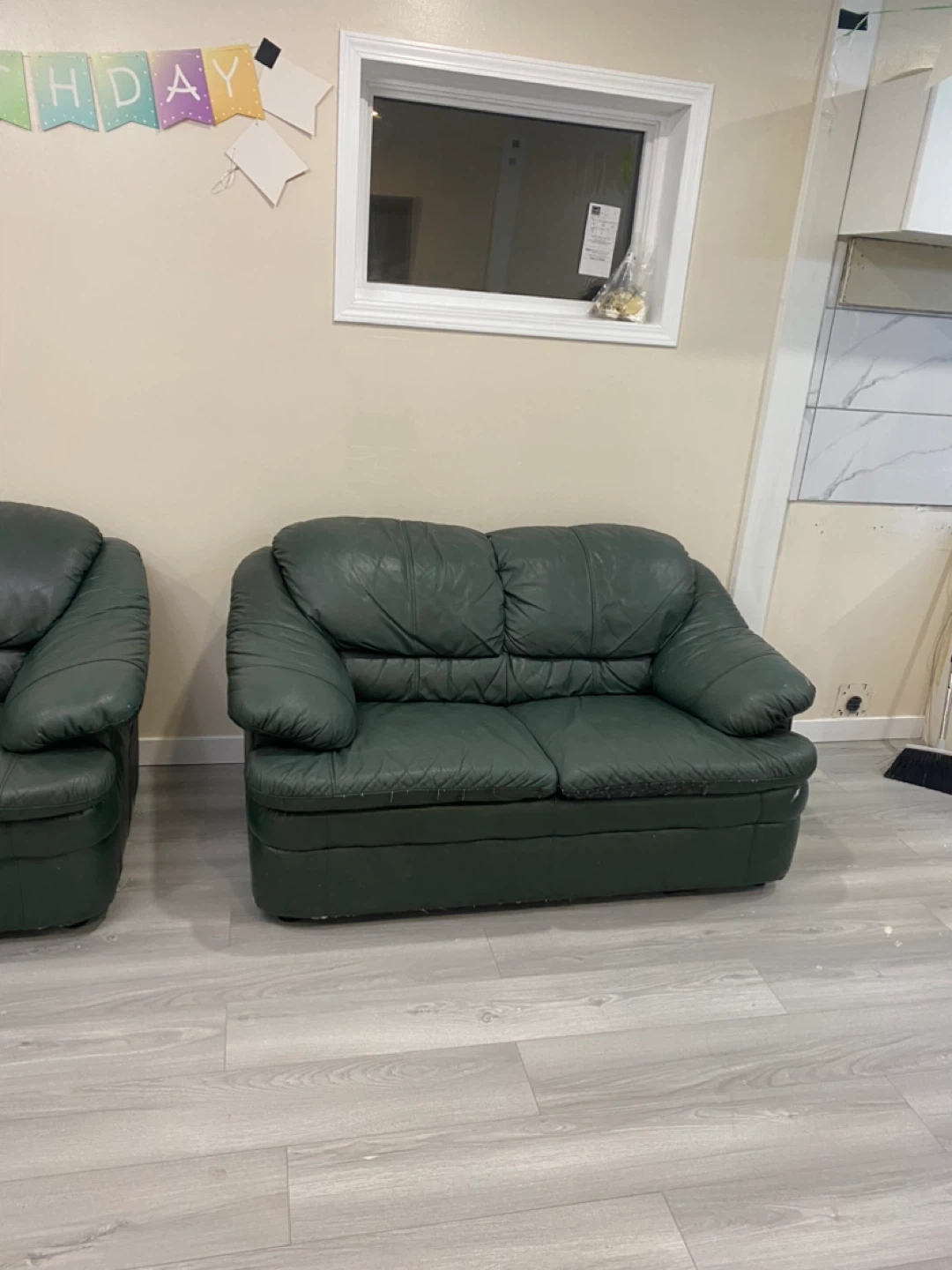 Green Leather Loveseat - Comfy & Stylish
