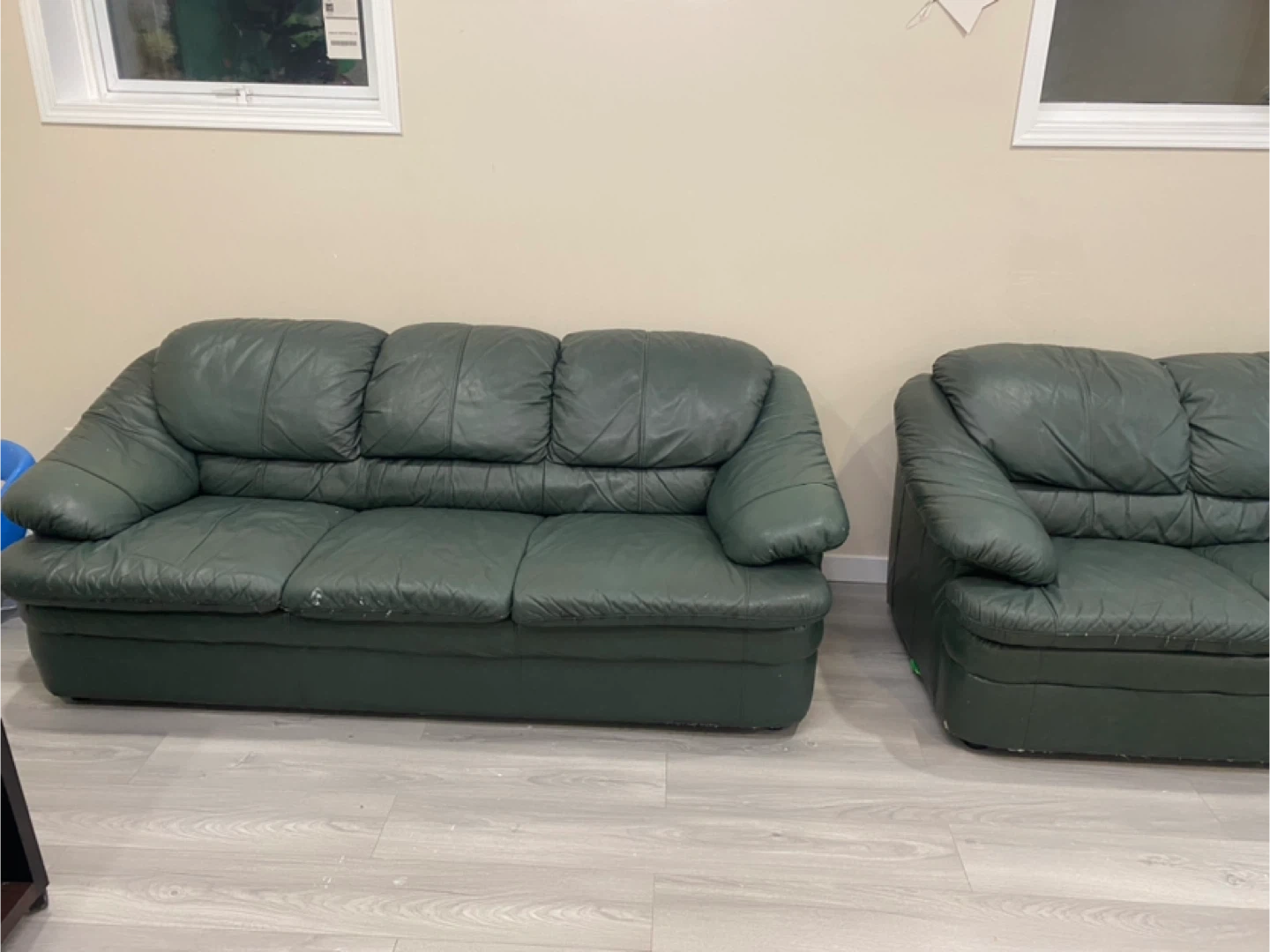 green leather couch
