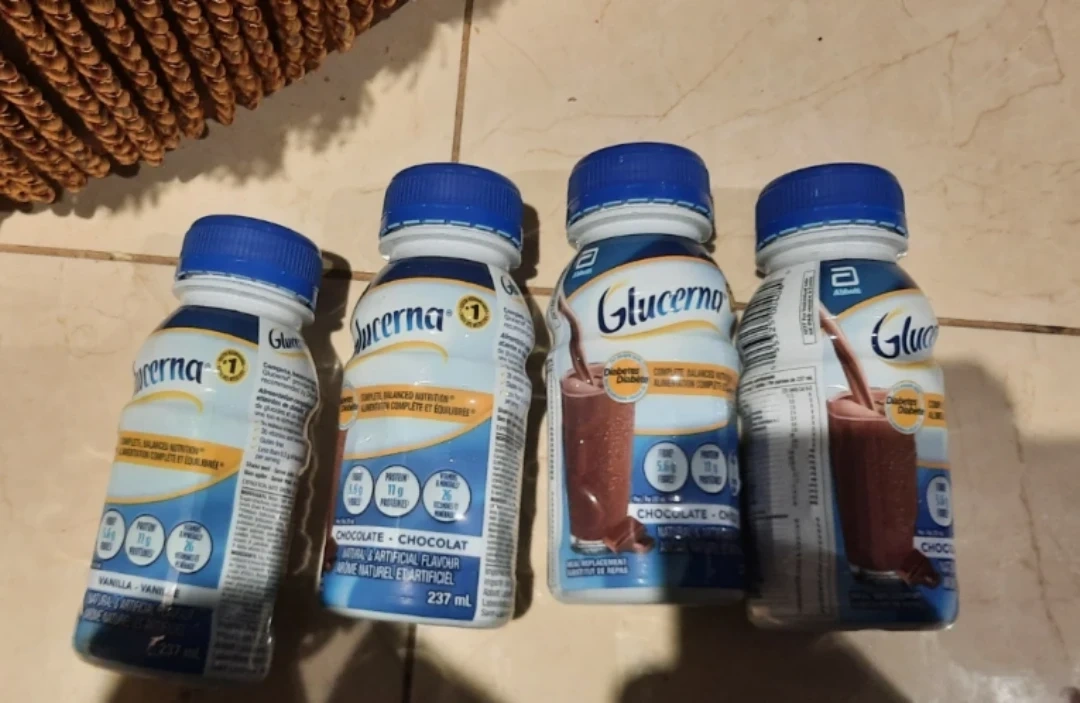 Lot of 4 Glucerna diabetes complete balanced nutrition drink in chocolate flavour. It contains 5.6g of fibre and 11g of protein. The drink has a volume of 237ml.