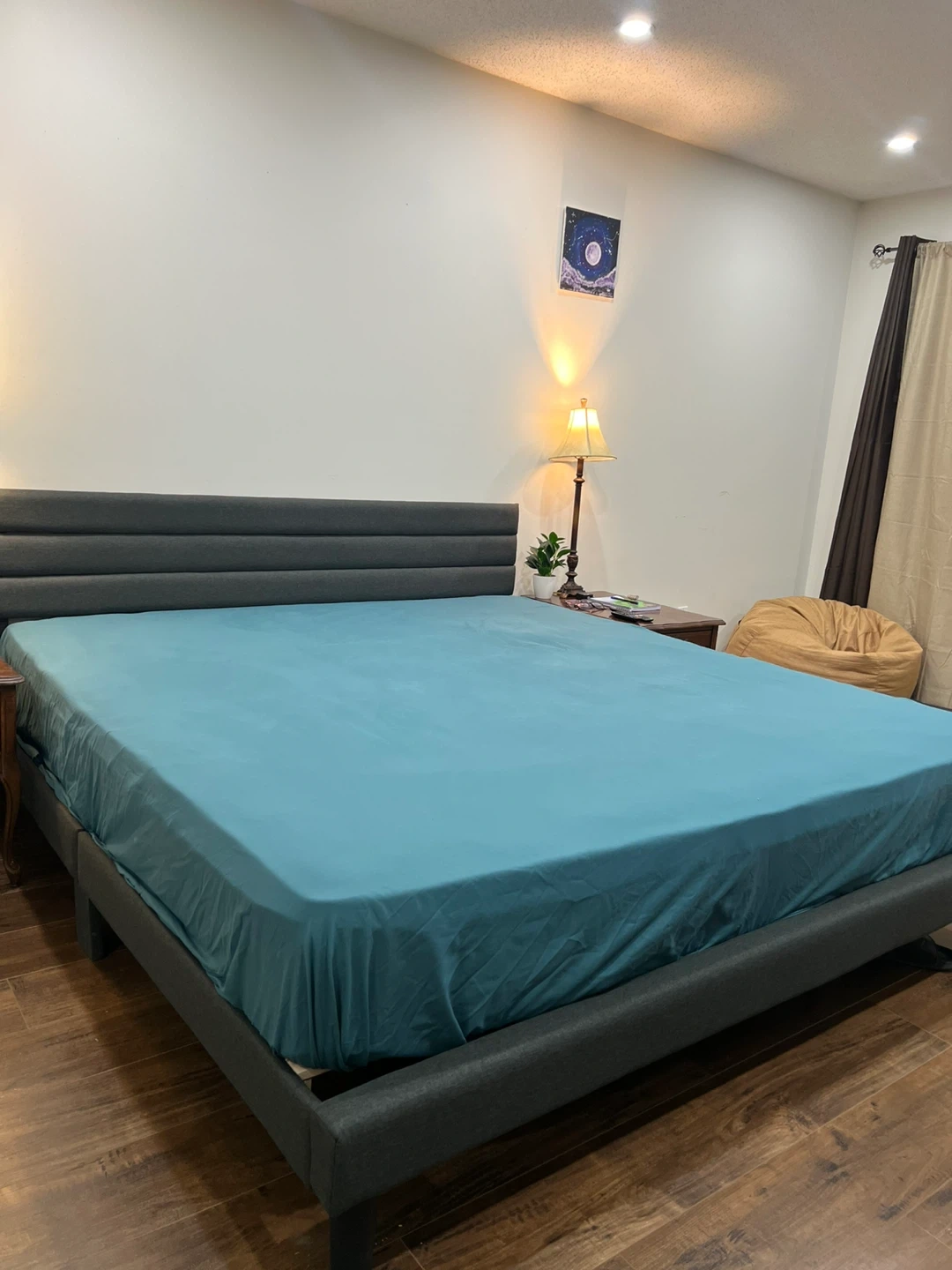 Selling a king -sized frame and mattress. ! It's in great condition and ready to brighten up your bedroom. Perfect for adding a pop of colour and comfort to your sleep space