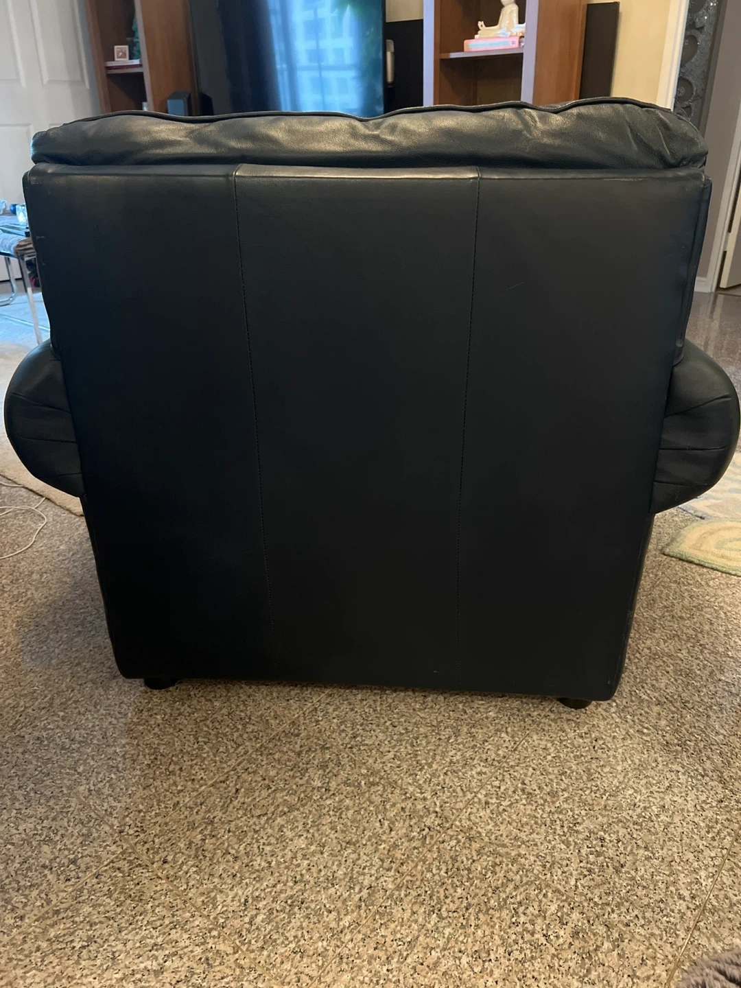 Beautiful genuine-leather armchair in a deep navy tone. This piece was lovingly cared for, regularly conditioned, and it truly shows. The leather is soft, thick, and in excellent condition with only natural creasing. No tears, no sagging, and no damage.