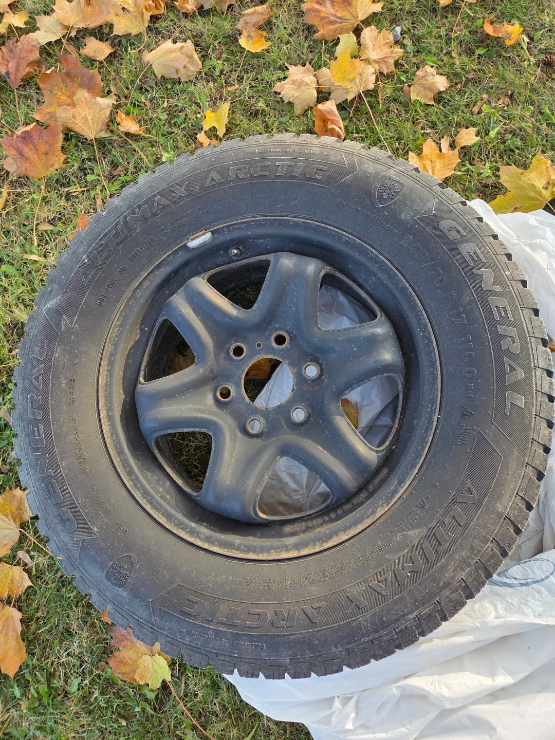 Sel17in buick tires set of four on steel rims General Altimax Arctic winter tire. The size is 215/70R17. Used a couple of winters has 3 good TPMS sensors asking 500 odo