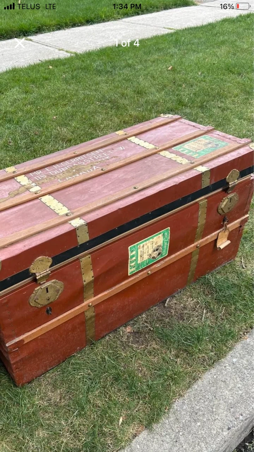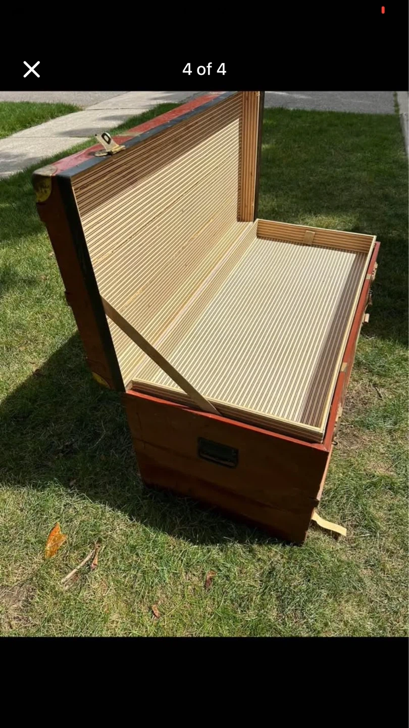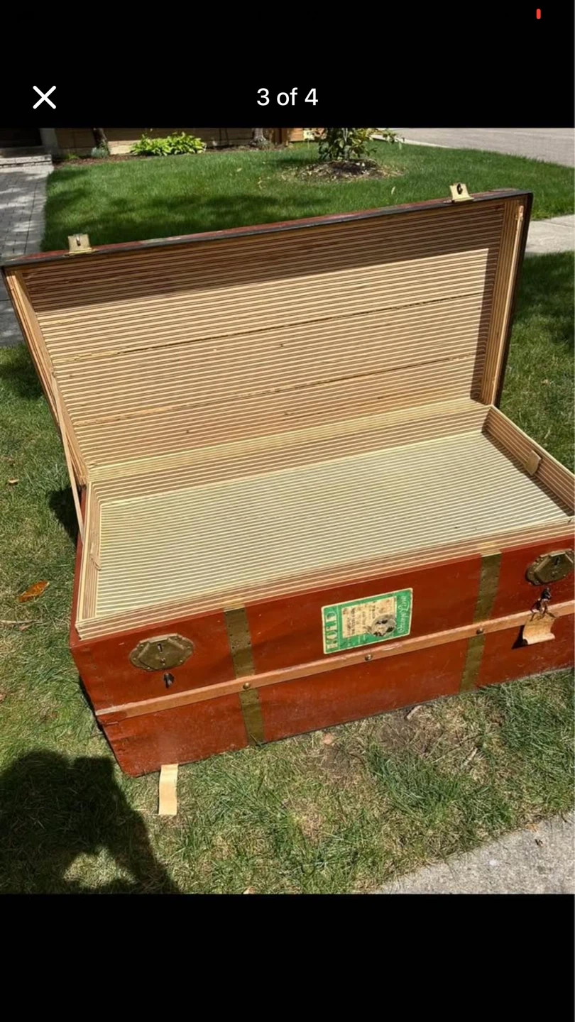 Buy & SellAntique steamer trunkAntique steamer trunk$200Selling an antique steamer trunk. It's a unique piece with lots of character! It would be a great addition to any home.WHERE TO MEETCheck LocationView MapSELLERPhilHillcrest Village28621 reviews0 chats·2 favorites·35 viewsSEND CHAT TO SELLERHi Phil! I’m interested in your listing.Hi Phil! I’m interested in your listing.Get the Karrot app to chatSign In to chat
