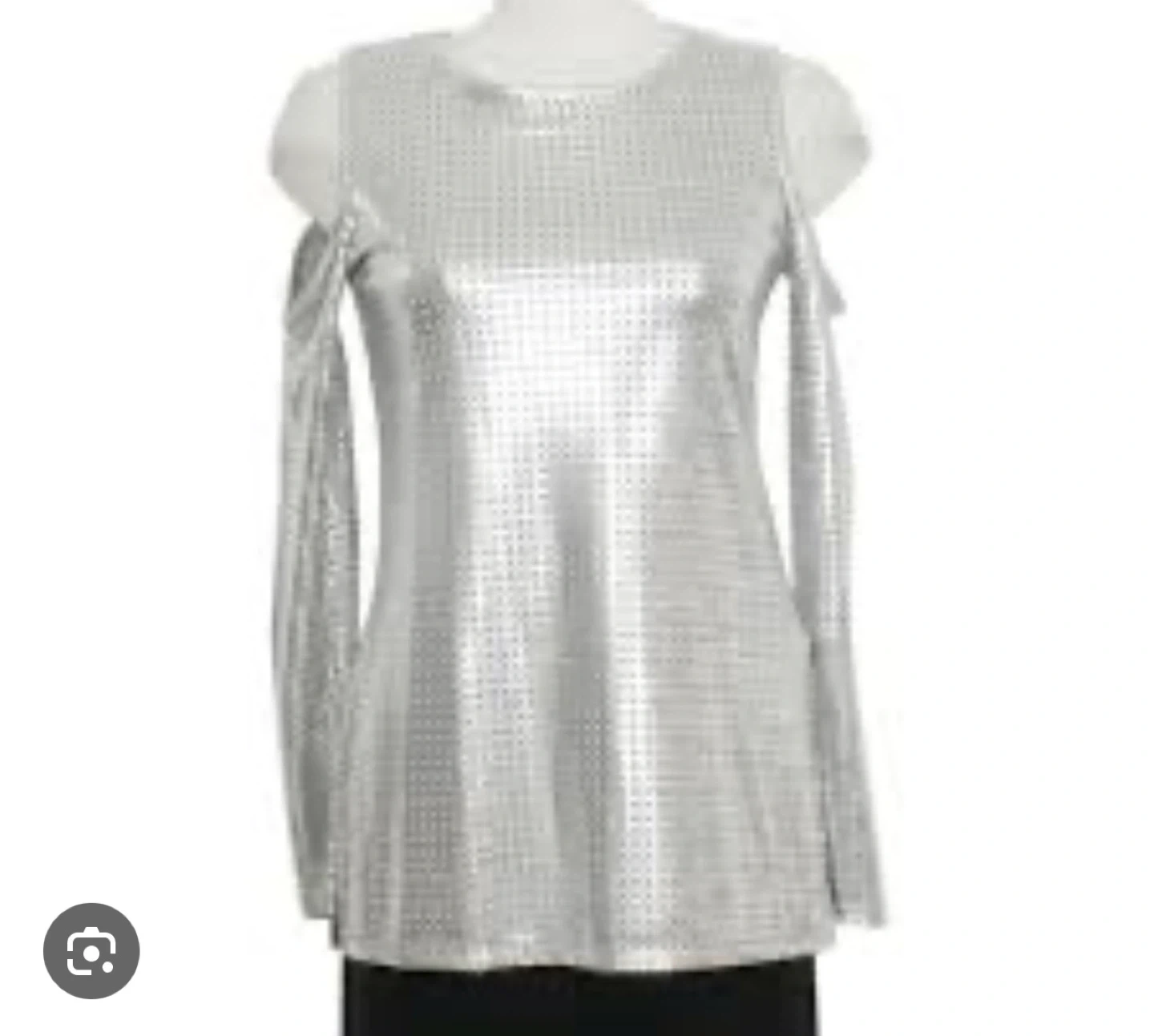 This is a Michael Kors silver cold shoulder top, size XL. It's a stylish piece from the SP 18 Fashion Basics collection. The original price was $78.00