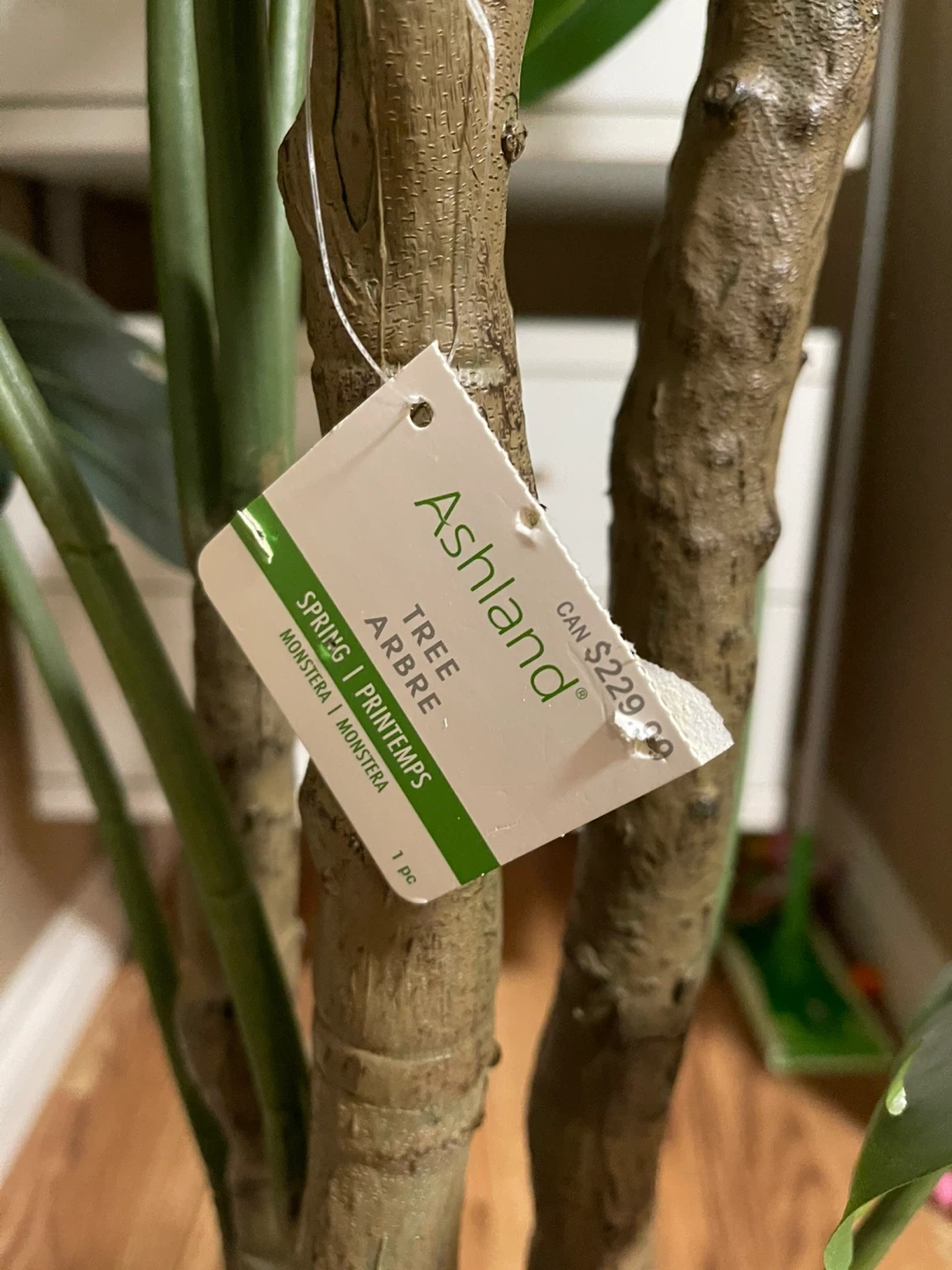 Selling an Ashland Monstera Tree! This faux plant brings a touch of greenery to any space without the upkeep of a real plant. The tag shows it was originally priced at $229.99.