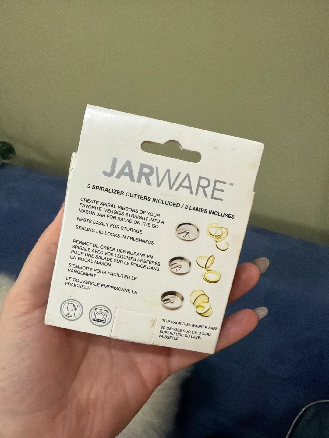 Buy & SellJarware 3-in-1 SpiralizerJarware 3-in-1 SpiralizerFreeJarware 3-in-1 Spiralizer still in its original packagingConditionLike new4 chats·4 favorites·71 viewsSELLERKateKing West Village73461 reviewsWHERE TO MEETStarbucks at King and Shaw
