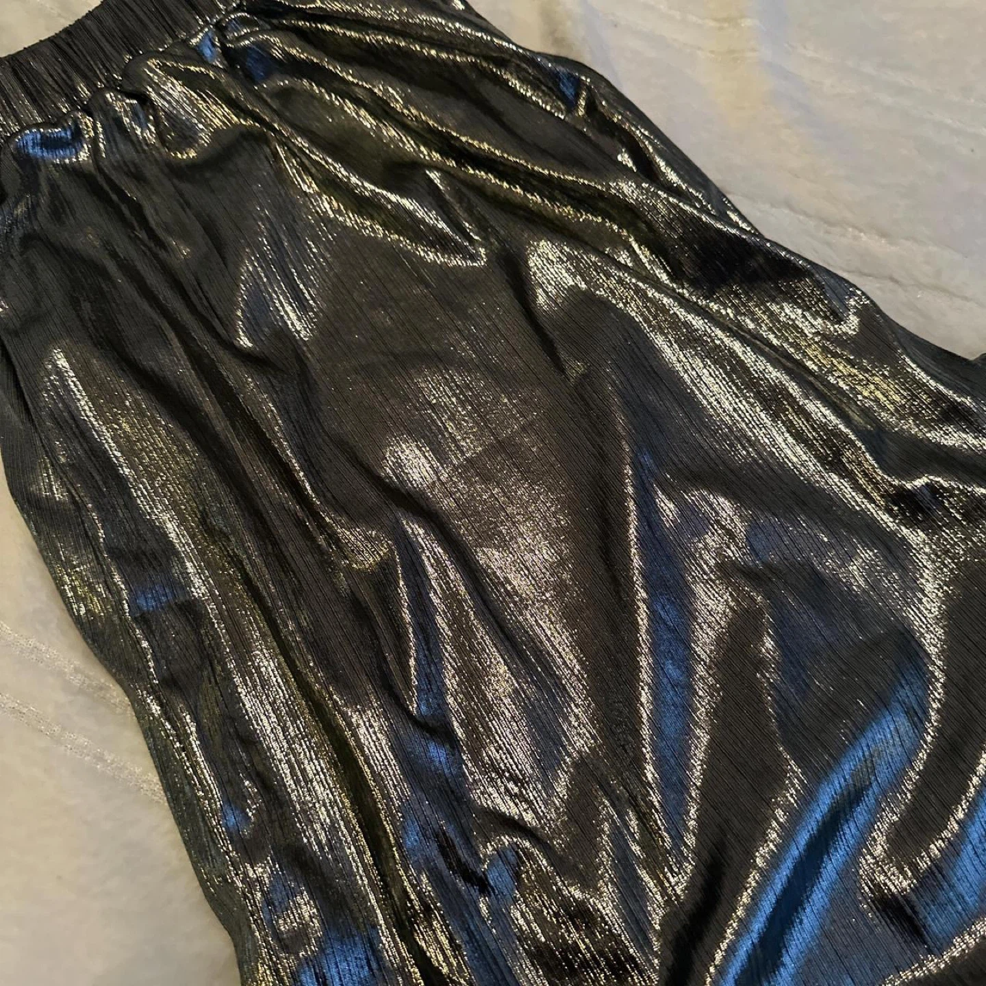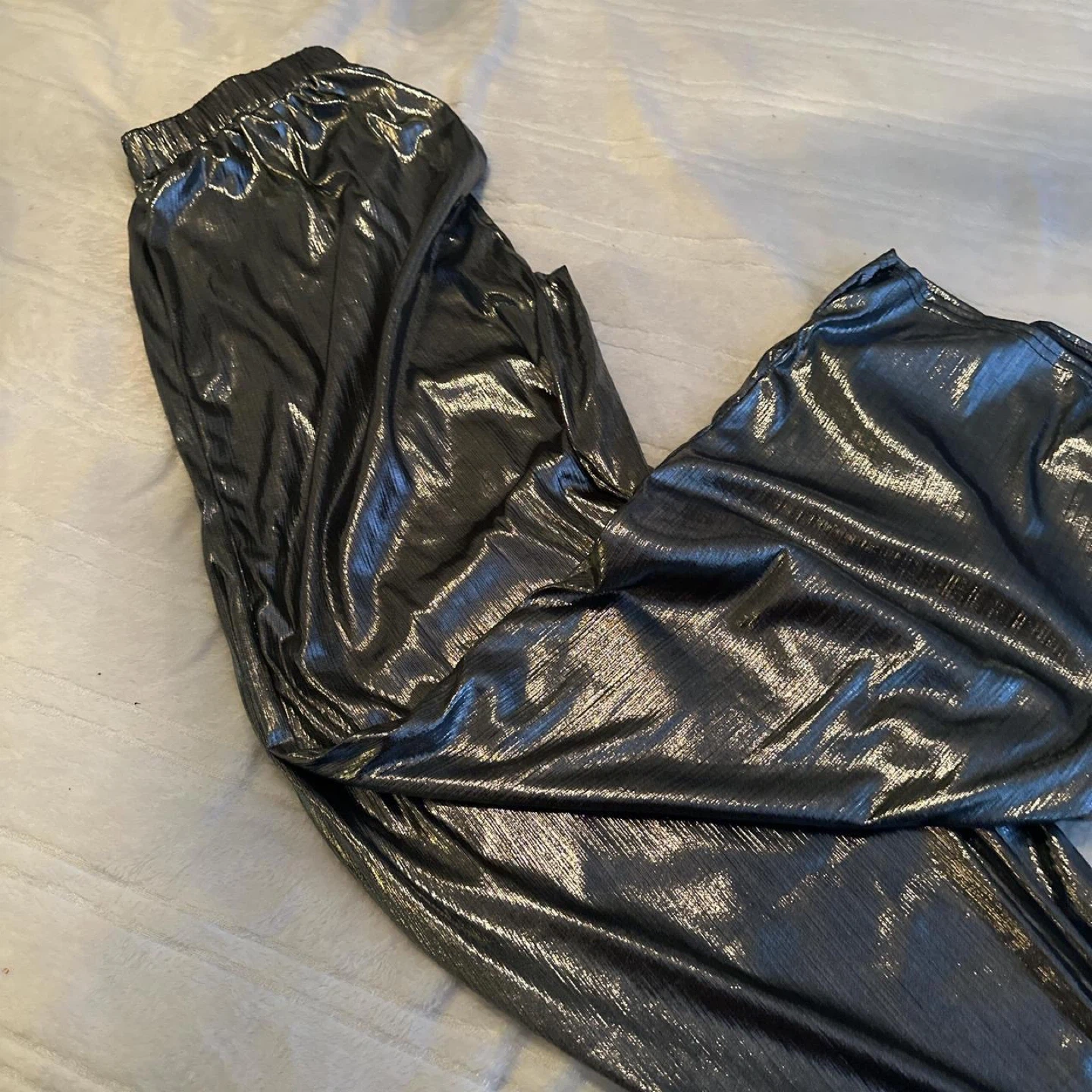 Selling a pair of pants in a shiny silver metallic colour! These pants are perfect for a night out or any occasion where you want to add a bit of sparkle to your outfit
