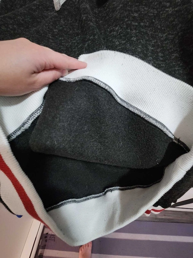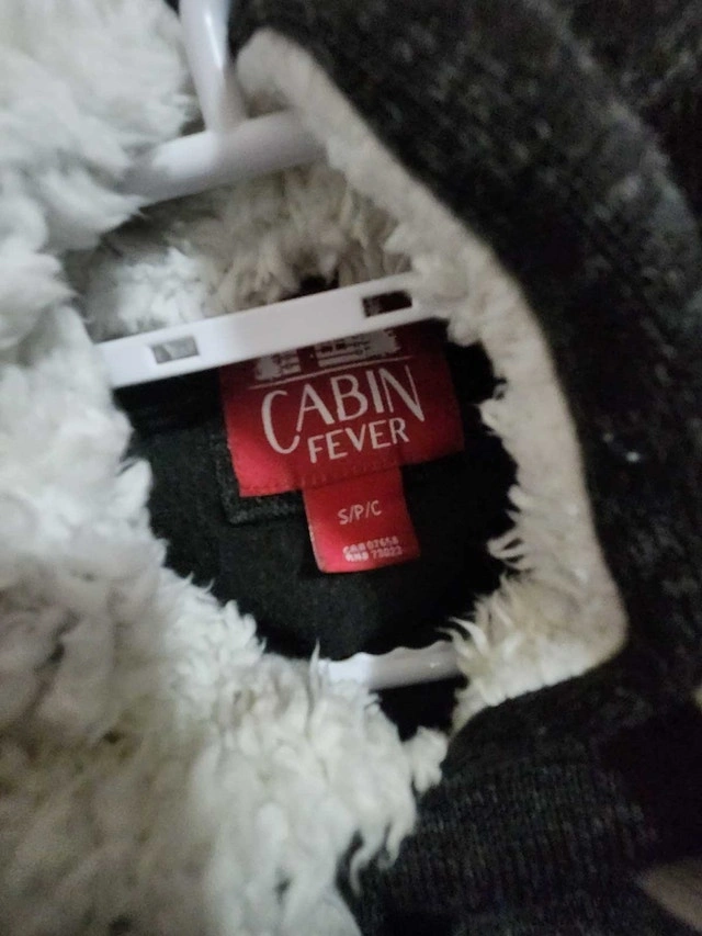 I'm selling a Womans Cabin Fever hoodie and perfect for keeping cozy. The hoodie is black/grey marl in colour and features red and white stripes at the hem and cuffs. It's a size small and is in good used condition. The hood has the fluffy white where the rest doesn't. Additional features: * Front pouch pocket * Ribbed hem and cuffs Cash only. Pickup in Hampton Village If you're seeing this ad, the hoodie is still available.