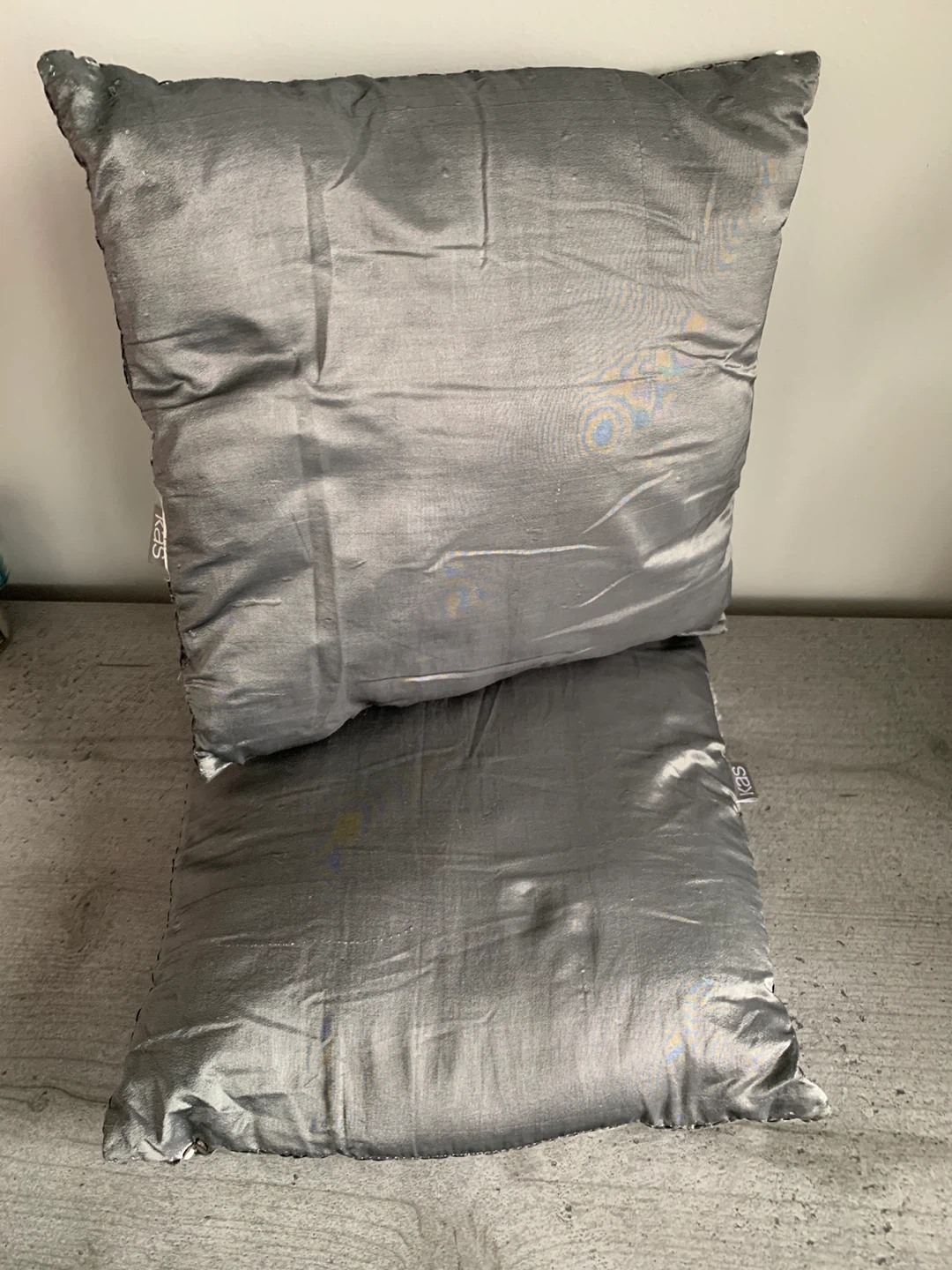 Selling a set of two KAS decorative pillows! They feature a stylish sequin design on one side and a smooth, solid fabric on the other. Perfect for adding a touch of sparkle to your living space or bedroom. They are in great condition and ready to be enjoyed!
