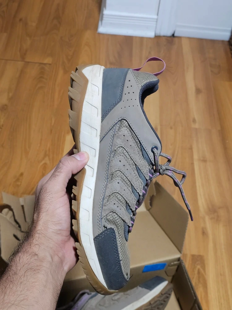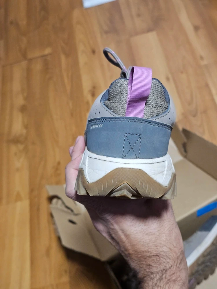 Selling a pair of Columbia Women's Trailstorm Low WP hiking shoes in size 9. They are waterproof and come in a wet sand/berry patch colour. The box is included and only used for 2 hinking trips, almost brand new.