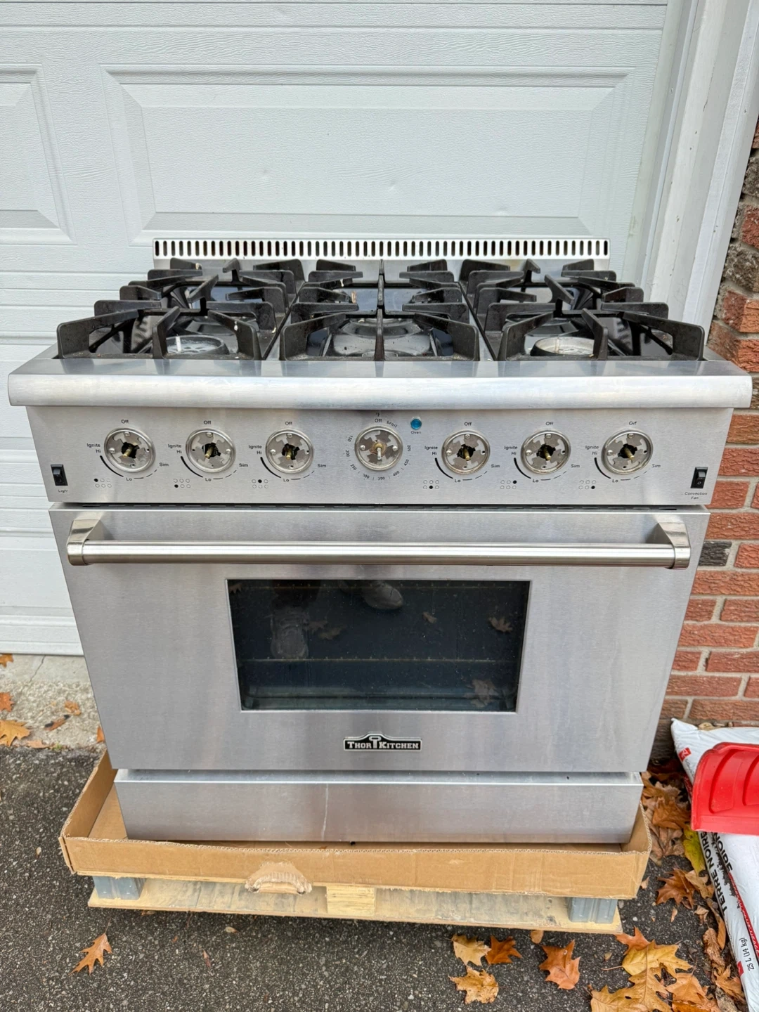 Selling a Thor Kitchen gas range in stainless steel. It's a great addition to any kitchen! It has been used.