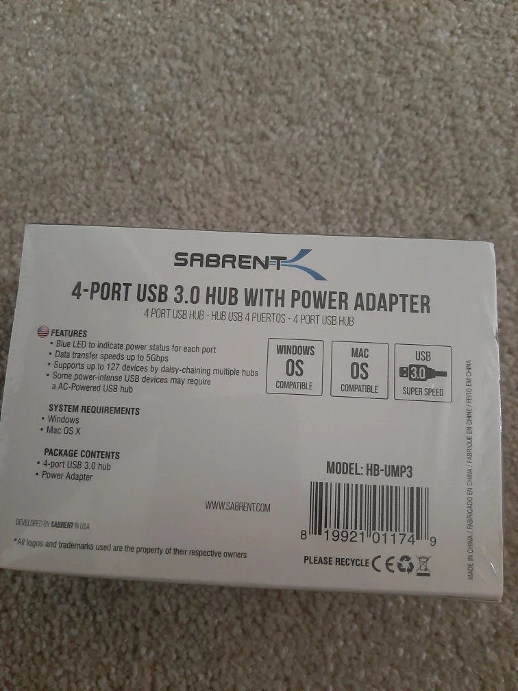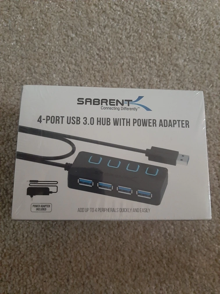Selling a brand new Sabrent 4-Port USB 3.0 Hub with Power Adapter! It's still in its original packaging.