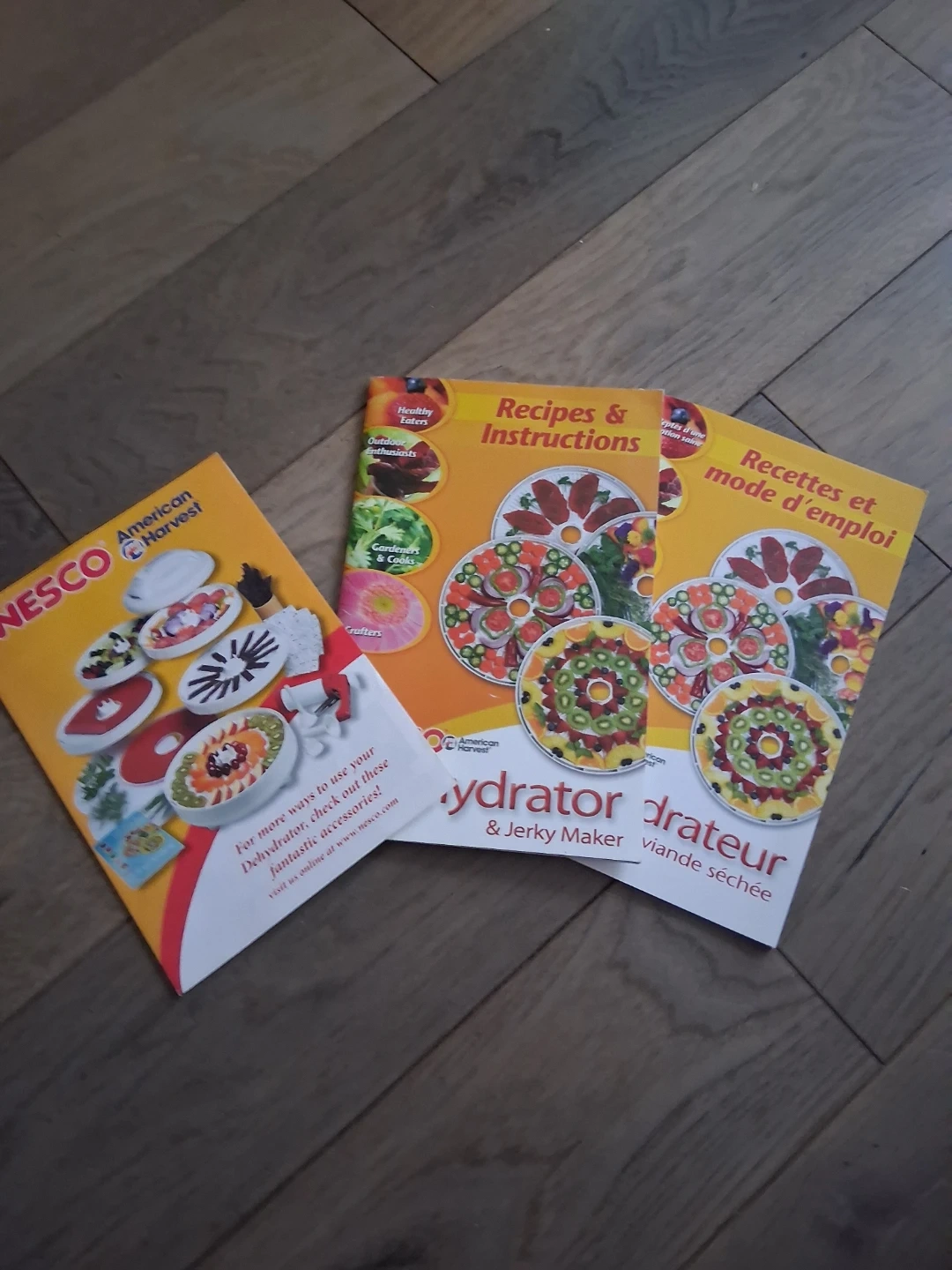 Selling a Nesco American Harvest Food Dehydrator & Jerky Maker! It comes with four durable plastic trays that are break resistant and dishwasher safe. The box and recipe books are included, so you can start dehydrating right away
