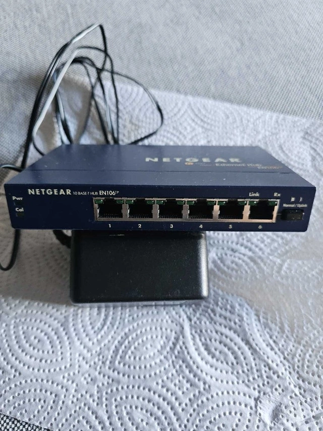 This is a used Netgear EN106 Ethernet Router / Switch with 6 ports, perfect for expanding your network connectivity. Key features include: * Six 10BASE-T Ethernet ports * Compact design for easy placement * Reliable performance for home or small office use This item has been previously enjoyed and shows signs of use. However, it is in good working condition and ready to be put to use in your home or office. Why not give this trusty gadget a new home? If the ad's up, it's still available!
