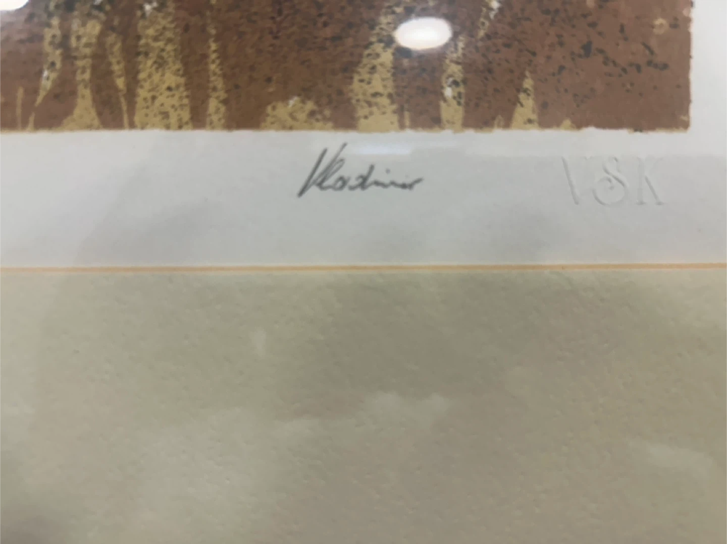 Large Framed art painted print of 'Wild Horses' by VSK. It's a limited edition, number 3 of 100. This piece would look great in any home! Bought at art gallery note pictures do no justice it’s way more gorgeous in person this art piece. My lights in my house are reflecting in picture so those white reflections are from my lights