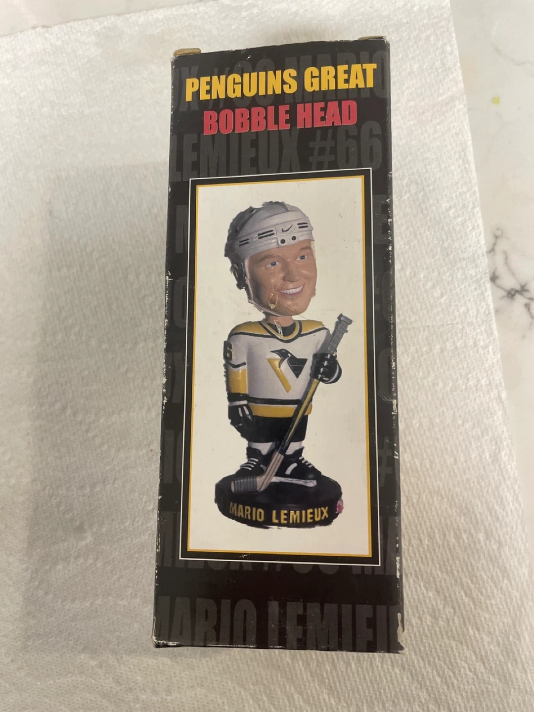 Selling a Mario Lemieux bobble head! It's a limited edition Penguins Great Bobble Head. The box has some wear, but the bobble head is in great shape!