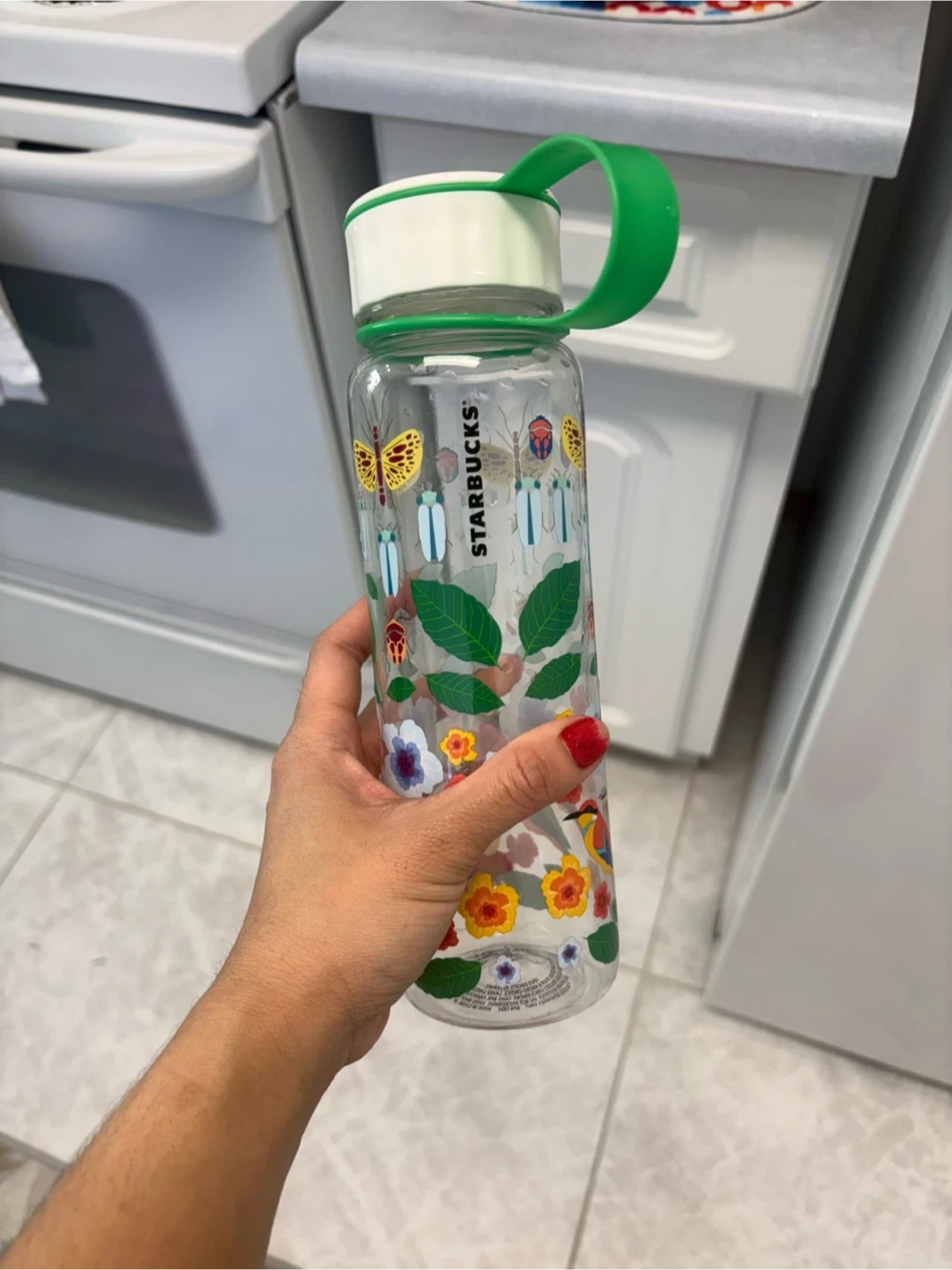 Selling a cute Starbucks water bottle with a floral and insect design! It's perfect for staying hydrated on the go. The bottle features colourful birds, flowers, and insects, making it a cheerful accessory for any outing pick up cash only