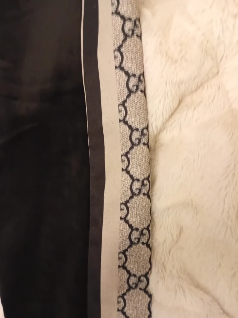 Selling a pair of Gucci jogger pants in black! The pants feature the classic Gucci logo pattern on the sides. They are in great condition and ready for a new owner!