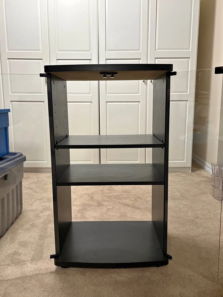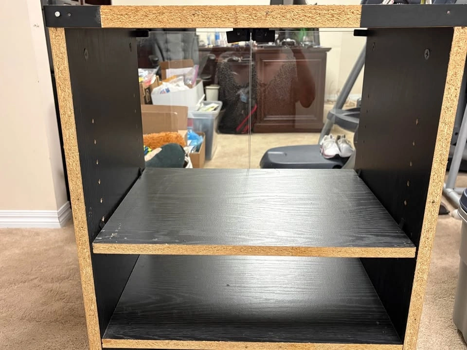 Cabinet with two glass doors and adjustable shelf. Black/grey particleboard. Has some scratches and no back on it. Is solid and was used to hold and display records. 36” high from floor, and 16” at widest point. Asking $15 *cash only*. You must be able to carry this up the stairs and out to your vehicle on your own (recommended to bring someone to assist you). If ad is still up, item is available. Located in Millwoods, near Menisa Elementary school. Will provide actual address when pickup is confirmed. Please see my other ads (always adding more!)