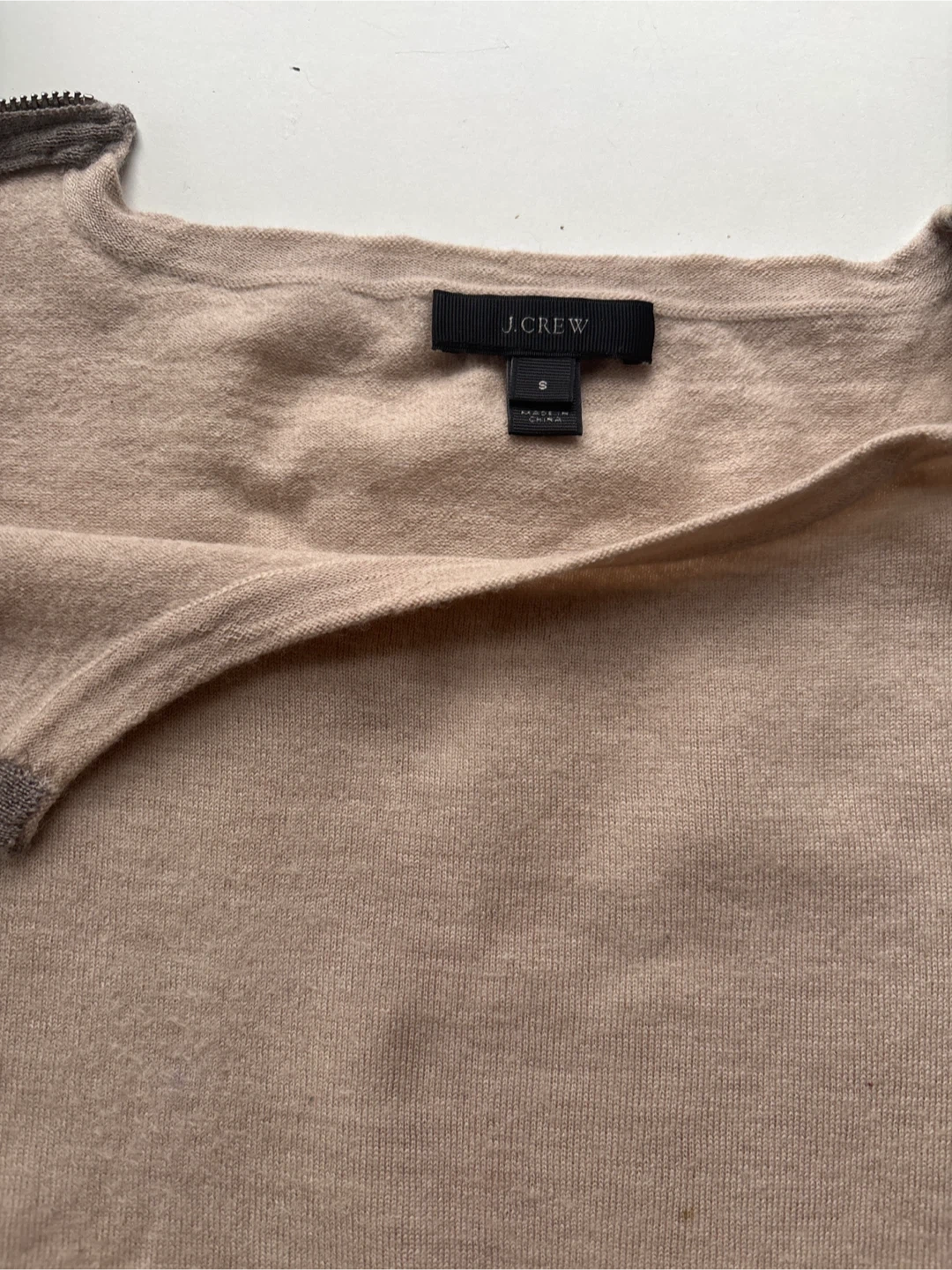 Selling a gently used J.Crew sweater in a lovely beige colour. It's a size small and features stylish zipper details on the shoulders. Perfect for adding a touch of sophistication to your wardrobe!