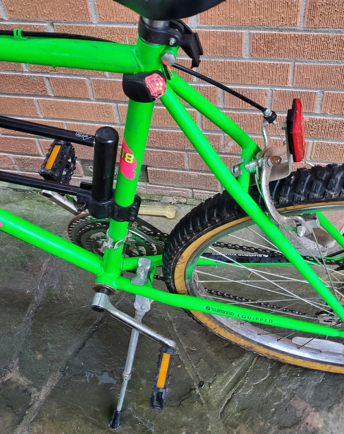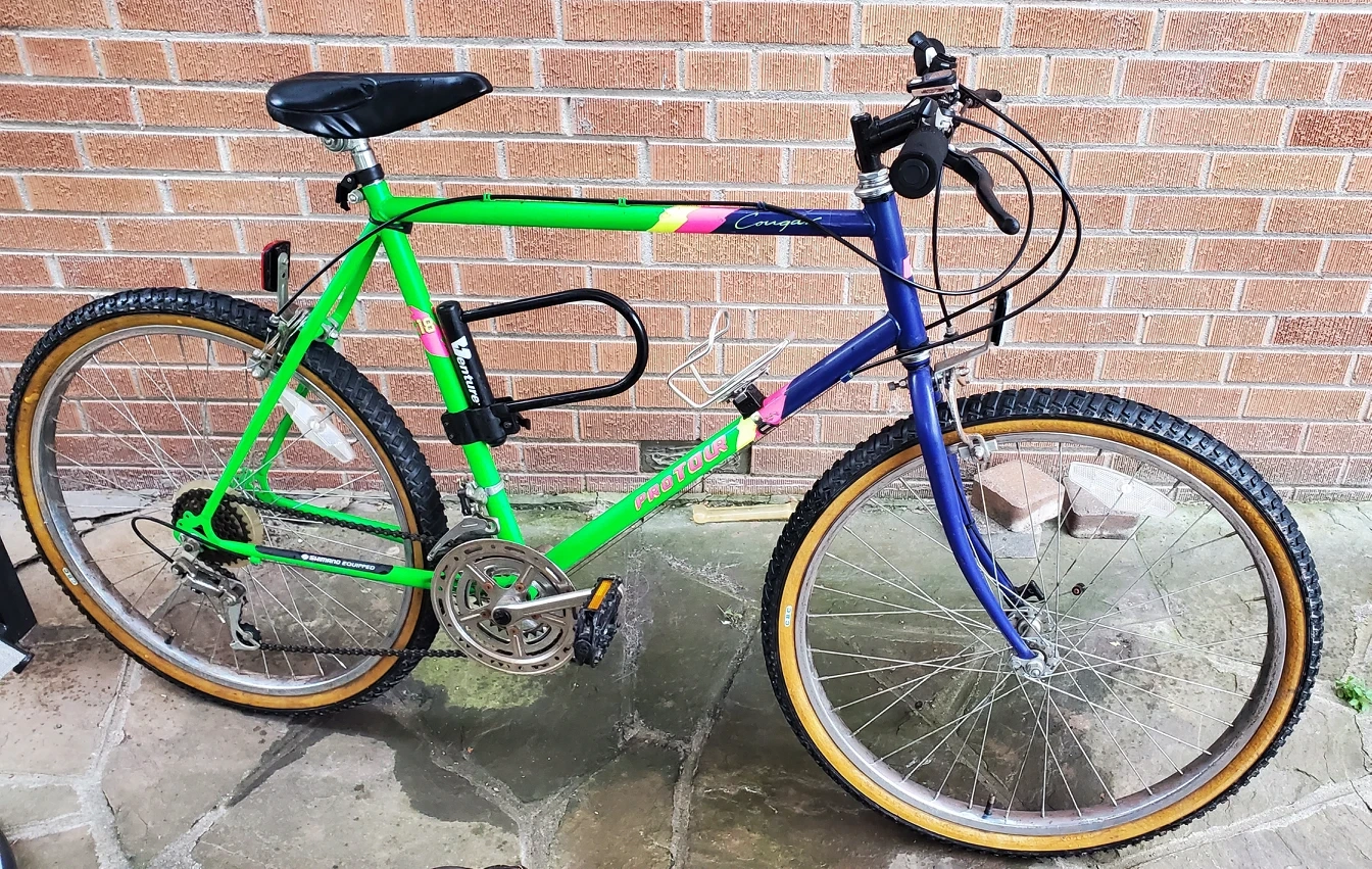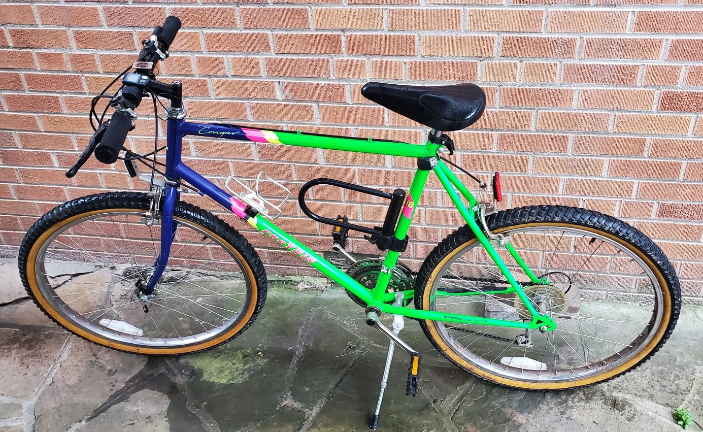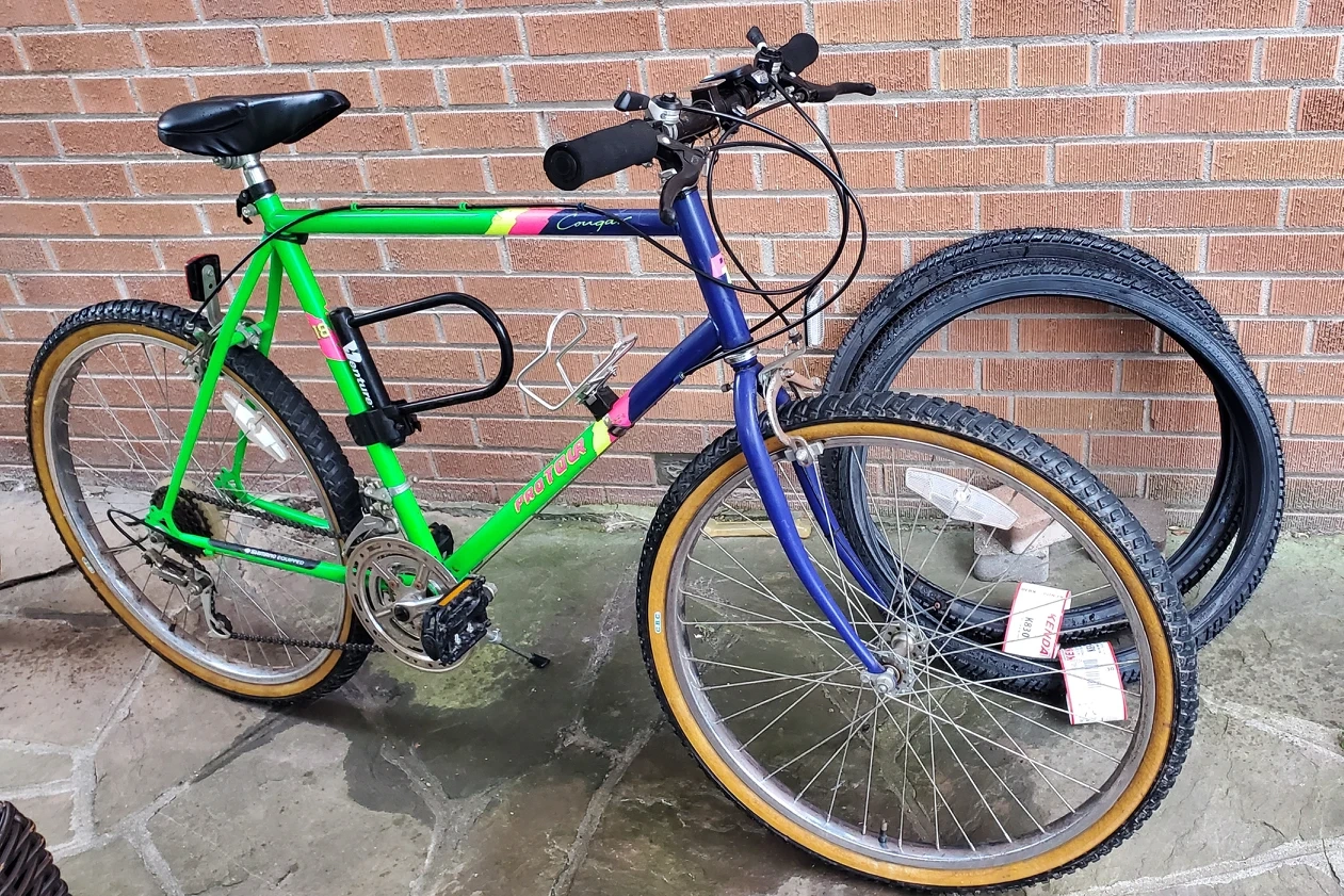 In very good shape, adult Protour Cougar 18 speed bike. Frame in excellent condition, superficial wear to paint from normal use. Tires are 26 inches, in fair shape, bike comes with 2 new, never installed 26 inch tires. Brakes function, chain in good condition, may need oil. Bike lock included, in like new condtion. Bike also has bottle holder and two working lights, white on front, red on rear. Seat in like new condition, no damage. Upright handle bars, grip in excellent condtion, no wear. Bike has been well cared for and very gently used.