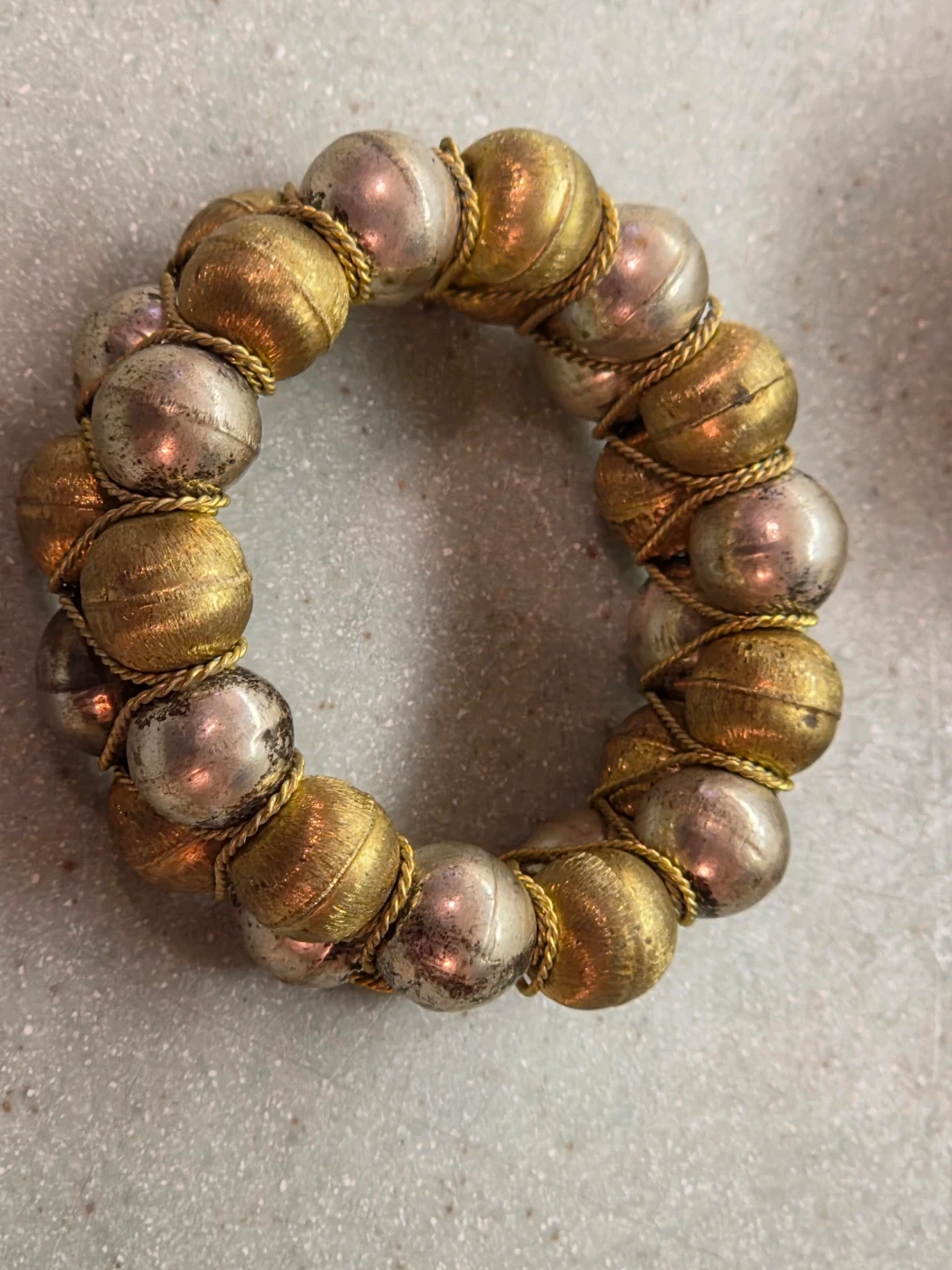 Here's a set of eight beautiful napkin rings! They feature gold and silver beads woven together, adding a touch of elegance to your table setting for the holiday season. 4 rings is the minimum sale.