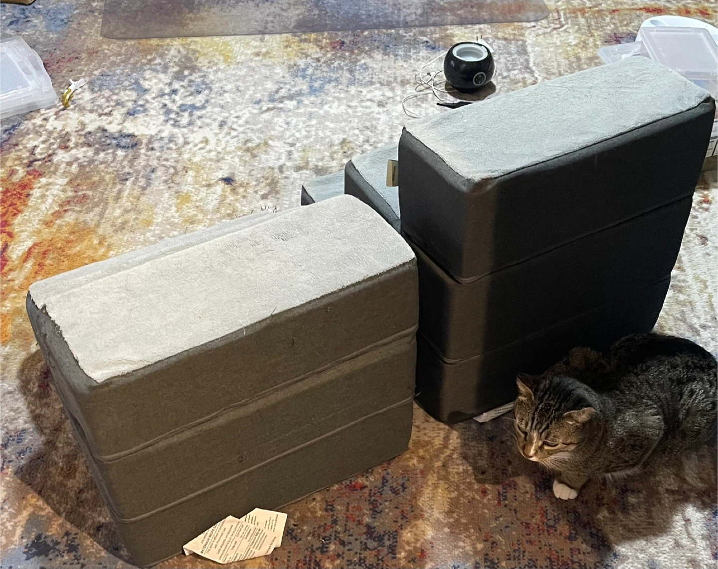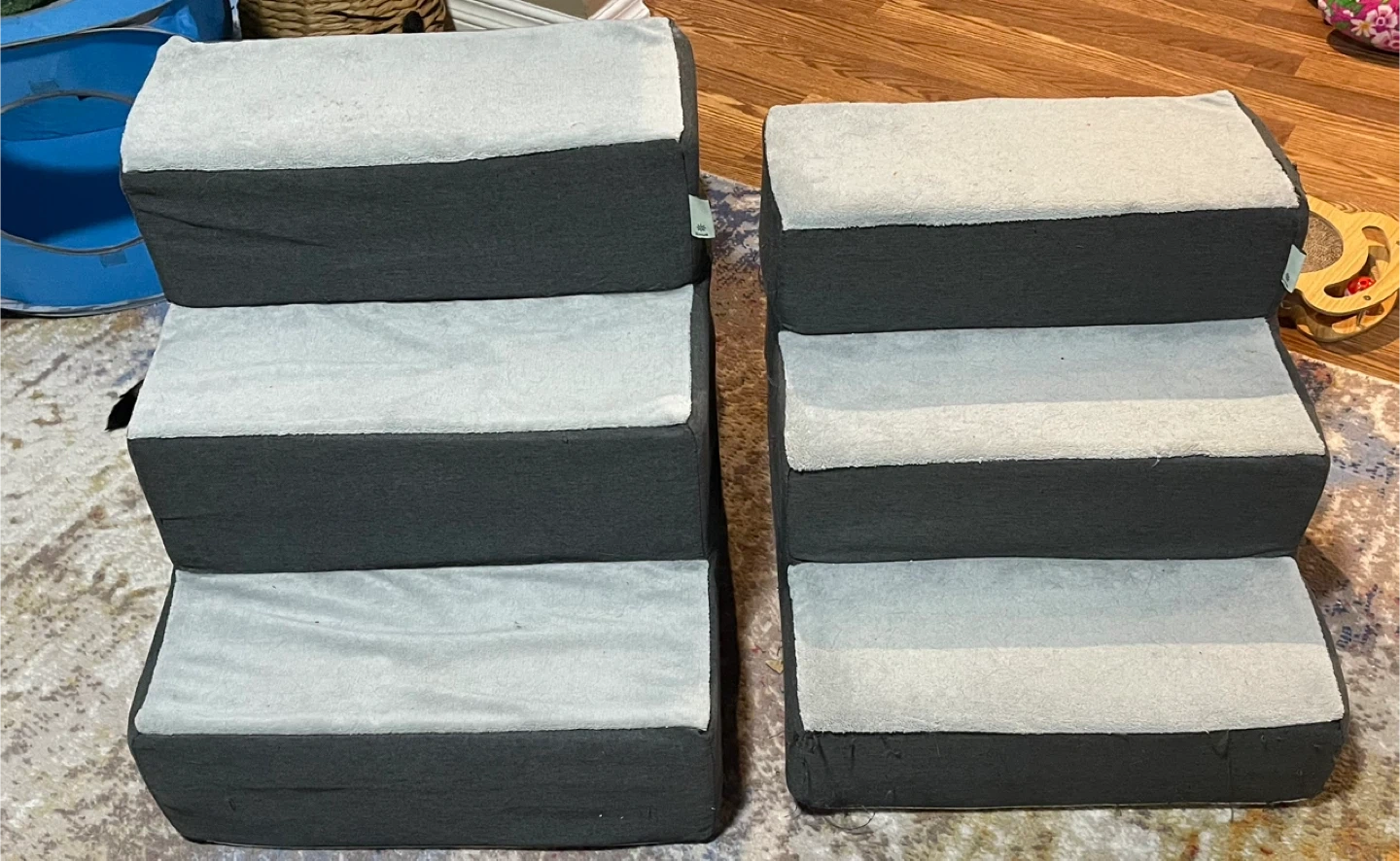 Selling pet steps/stairs for your furry friend! These are in good condition and perfect for helping smaller or older pets reach higher places like beds or couches. They are a grey colour with a soft carpeted top.