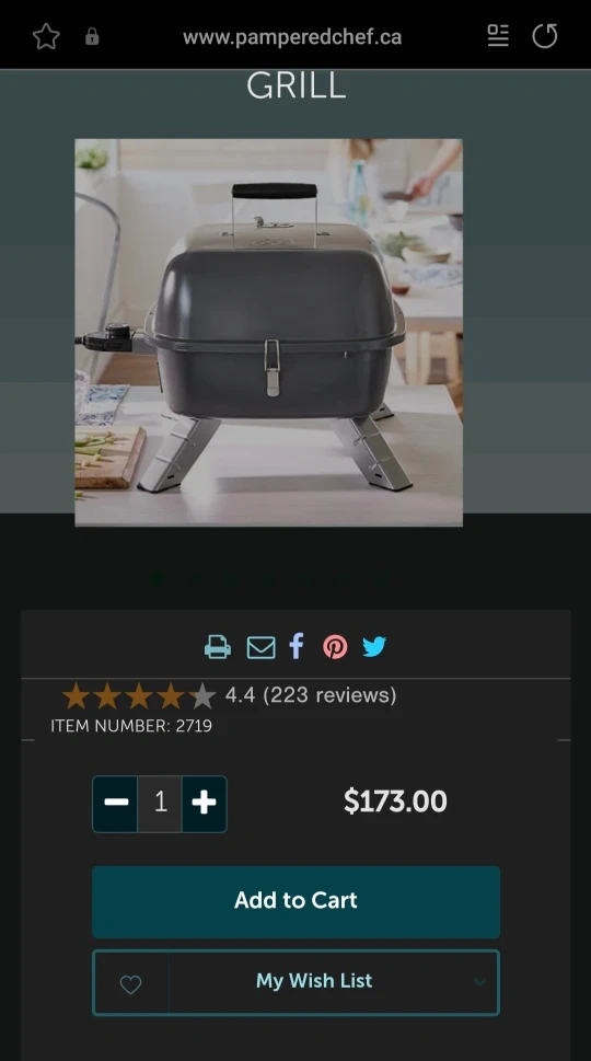 Selling a Pampered Chef indoor outdoor portable grill! It's perfect for small spaces or taking on the go. It has never been used and without box Originally bought for $173.00 + Hst