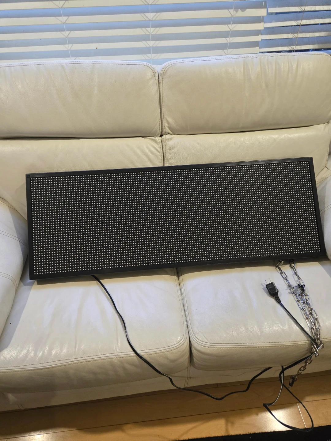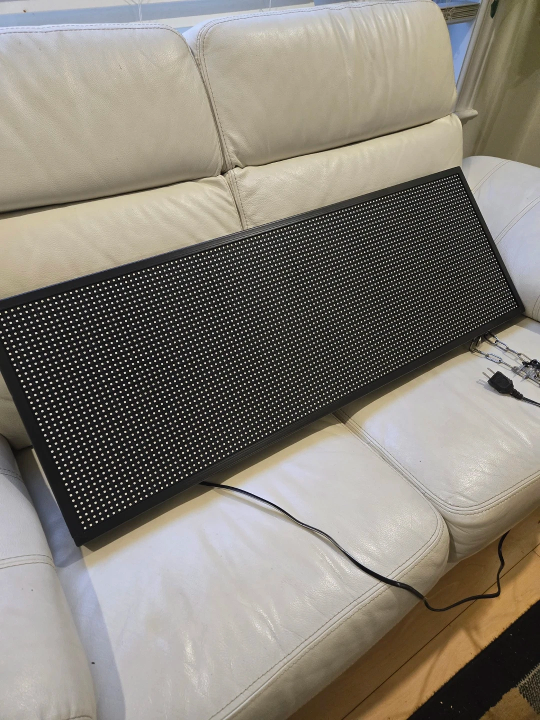 Looking to sell this LED Display Board. It's 40 inches long and programmable, so you can display all sorts of messages and designs! It features multi content combination layout, multi font effects & background settings, and multi display & program options. It also comes with a hanging ring, US plug, and USB insert.