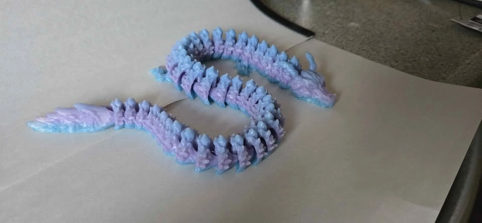 Multi-colored PETG fidget dragon, great for playing with or as a figurine.