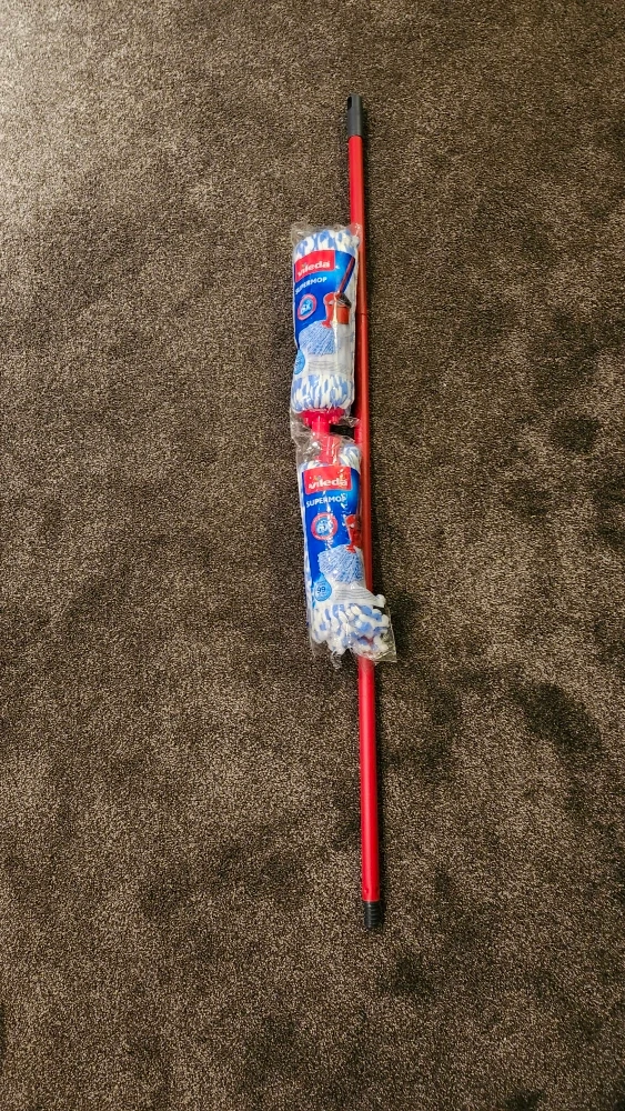 Selling a brand new Vileda SuperMop that comes with two refills! It's 100% microfibre and removes bacteria with just water. The refills are reusable and machine washable.