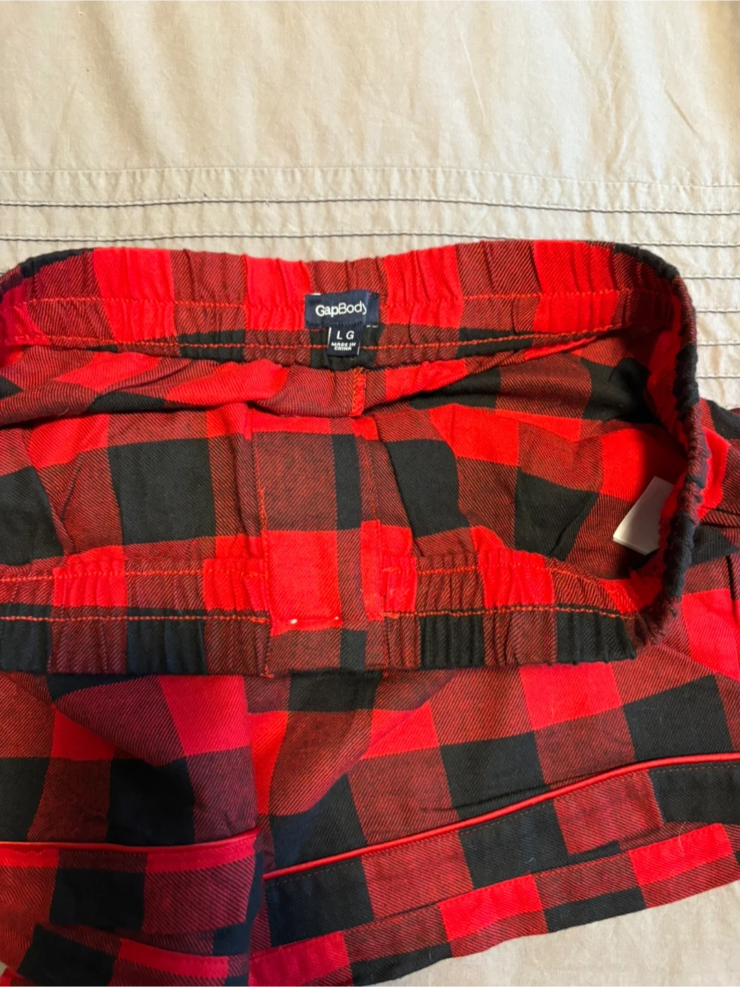Cute GapBody pajama shorts in a red and black plaid pattern!