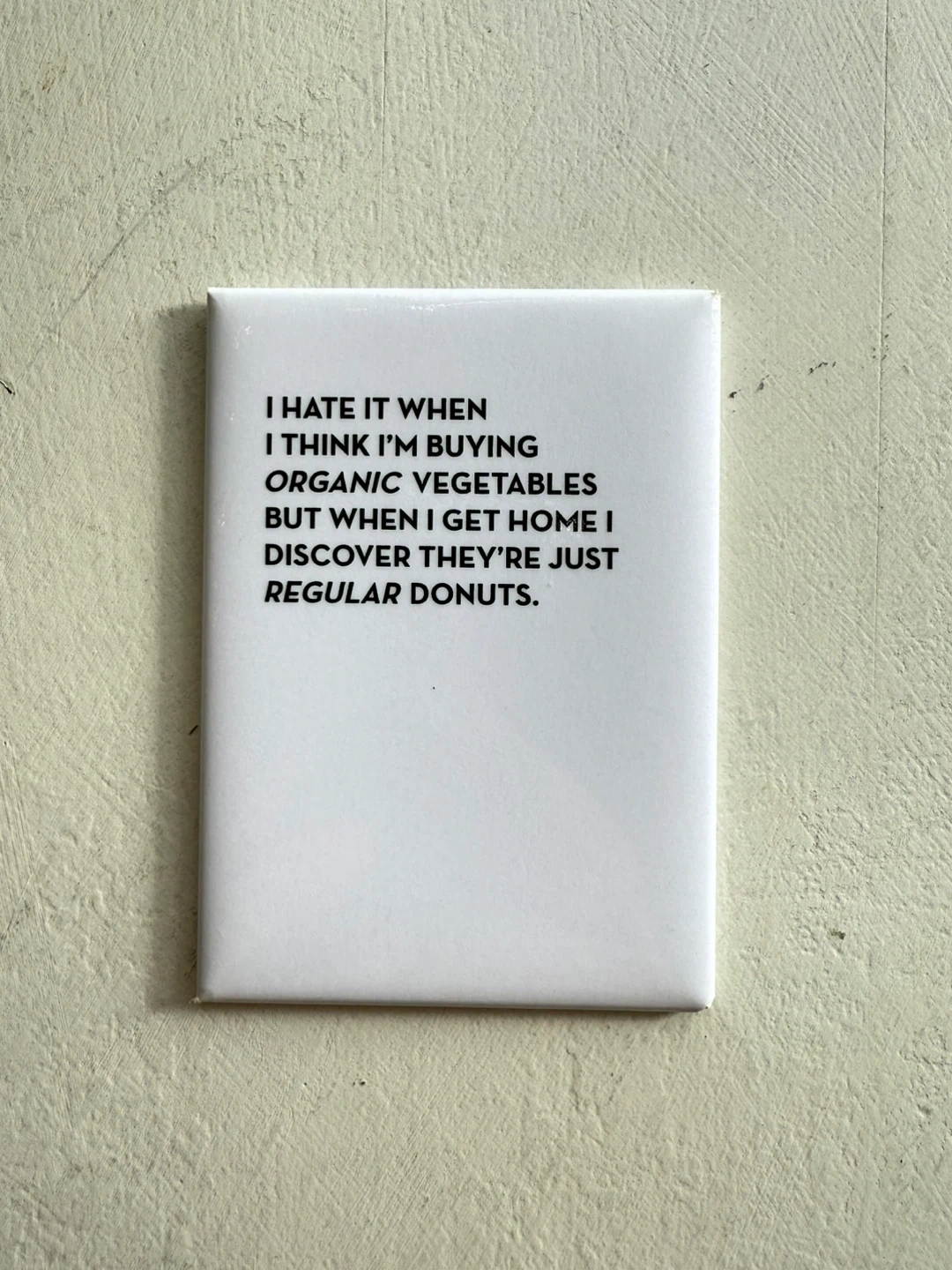 “I HATE IT WHEN I THINK I’M BUYING ORGANIC VEGETABLES BUT WHEN I GET HOME I DISCOVER THEY’RE JUST REGULAR DONUTS.”