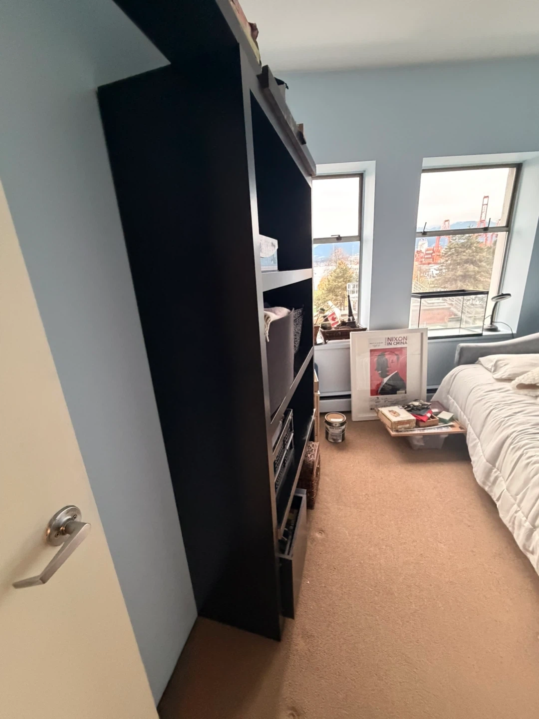 Selling a black bookcase! It's in great condition and ready for your books, decor, or storage bins. It has multiple shelves to help you organize your space